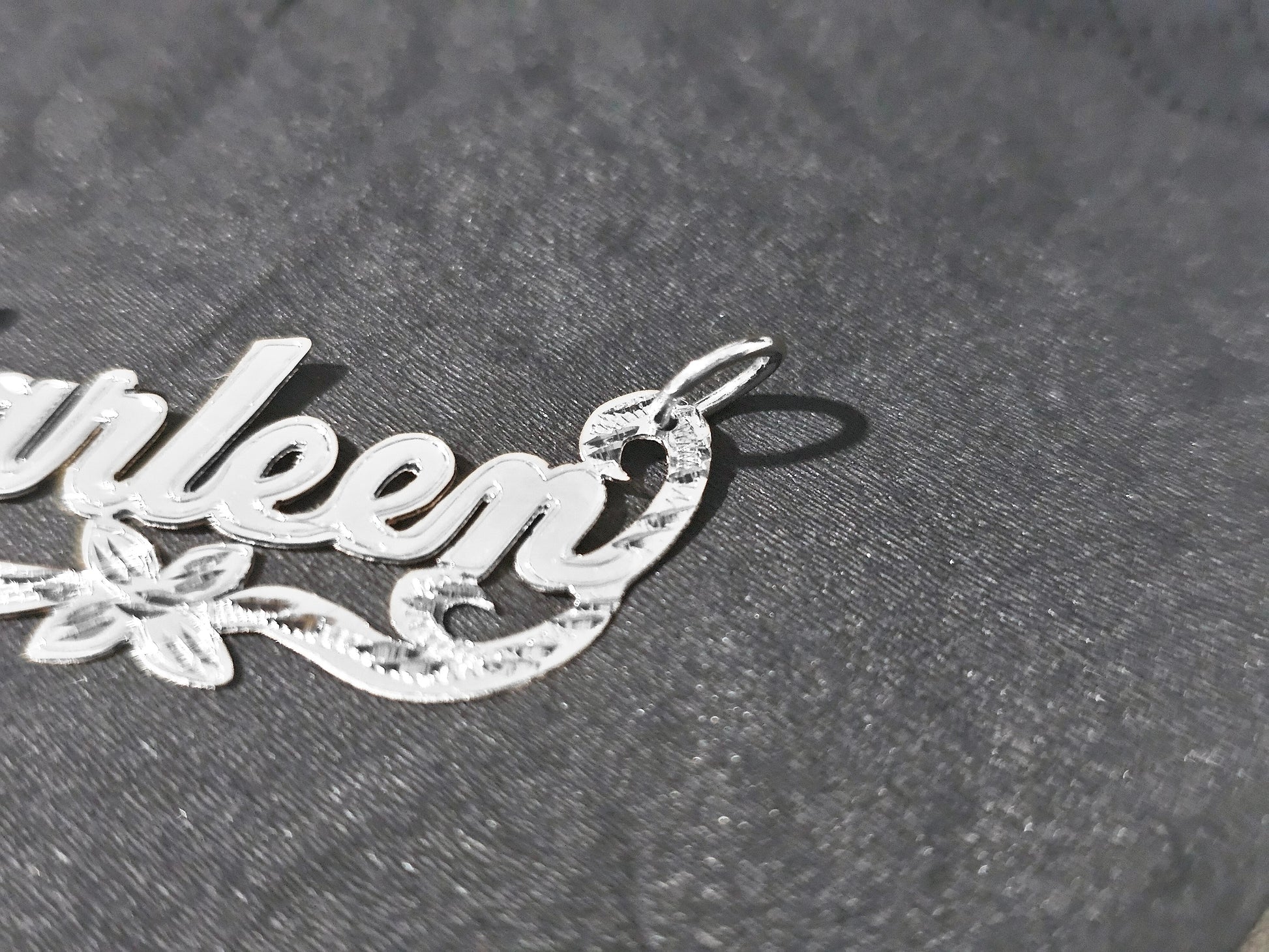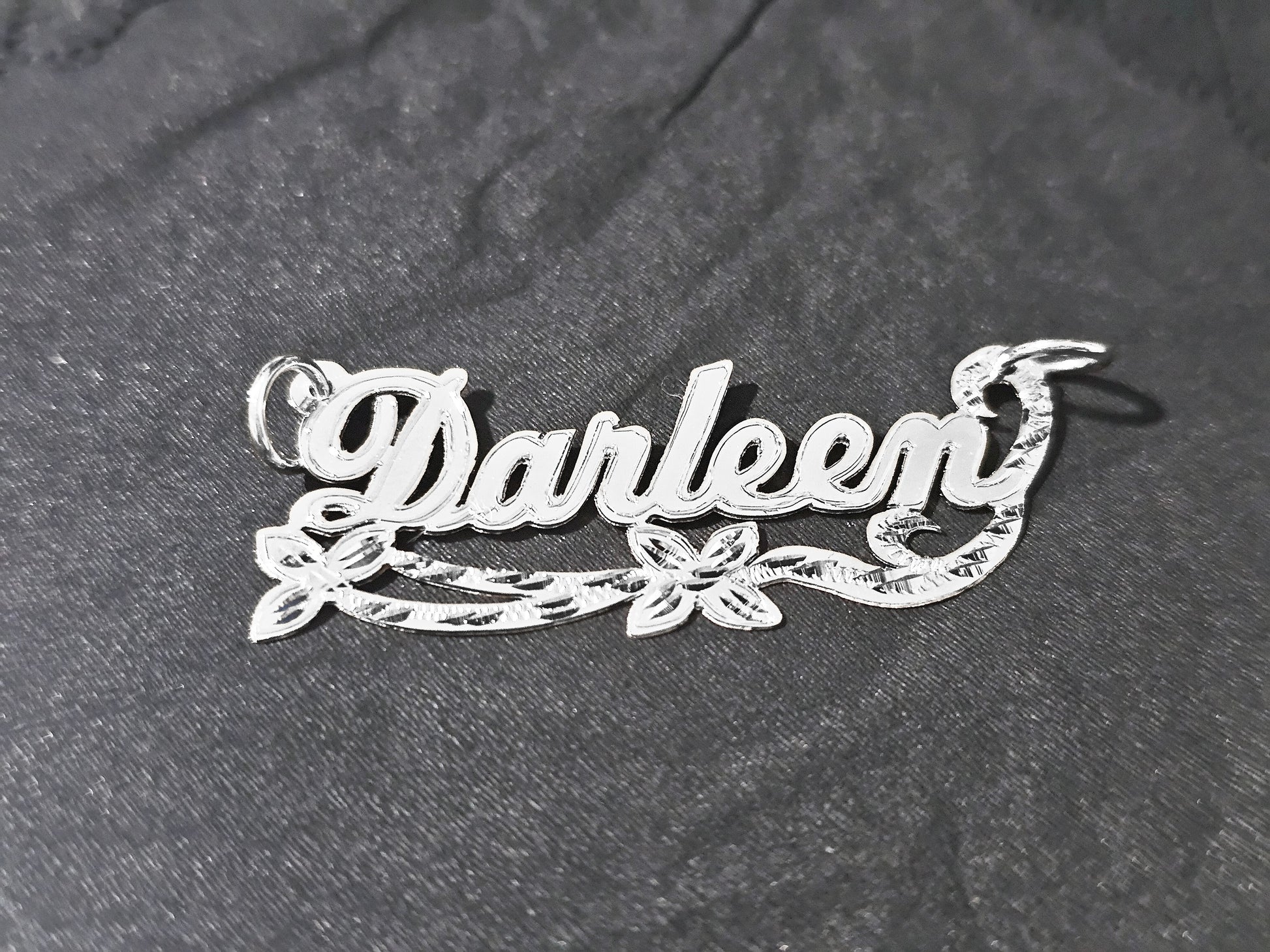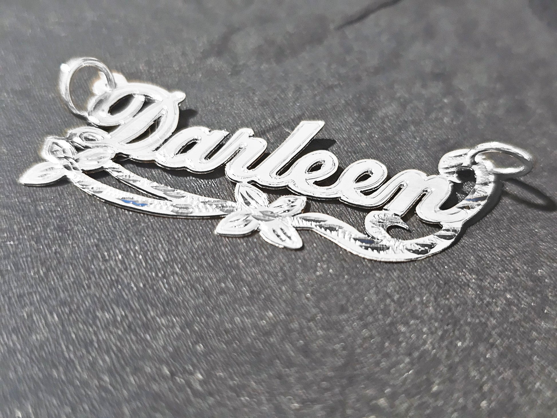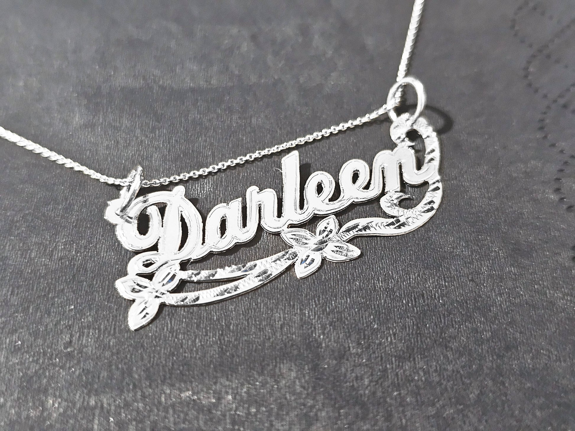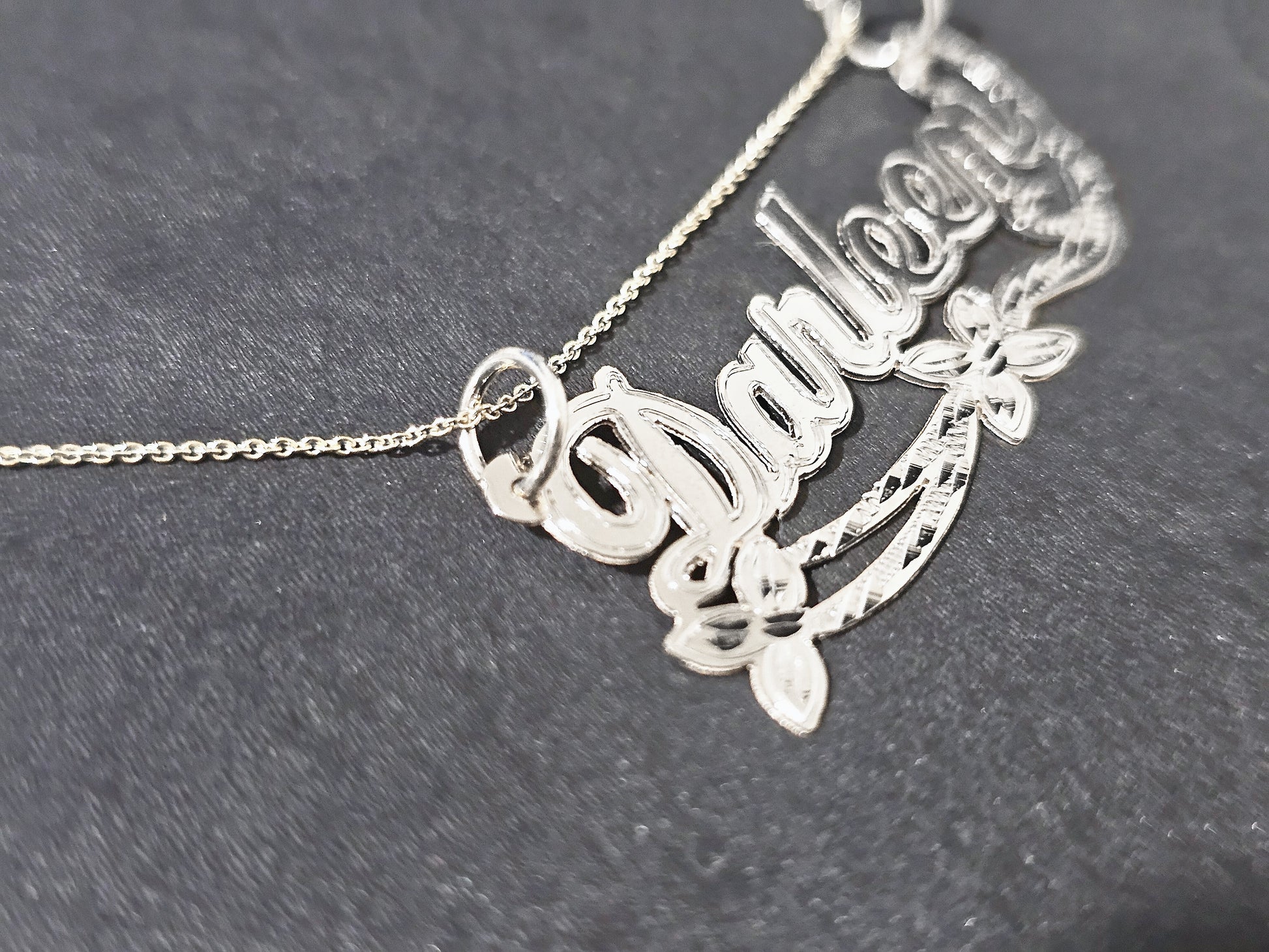 925 Sterling Silver Name Pendant Necklace with Double Flower Ribbon