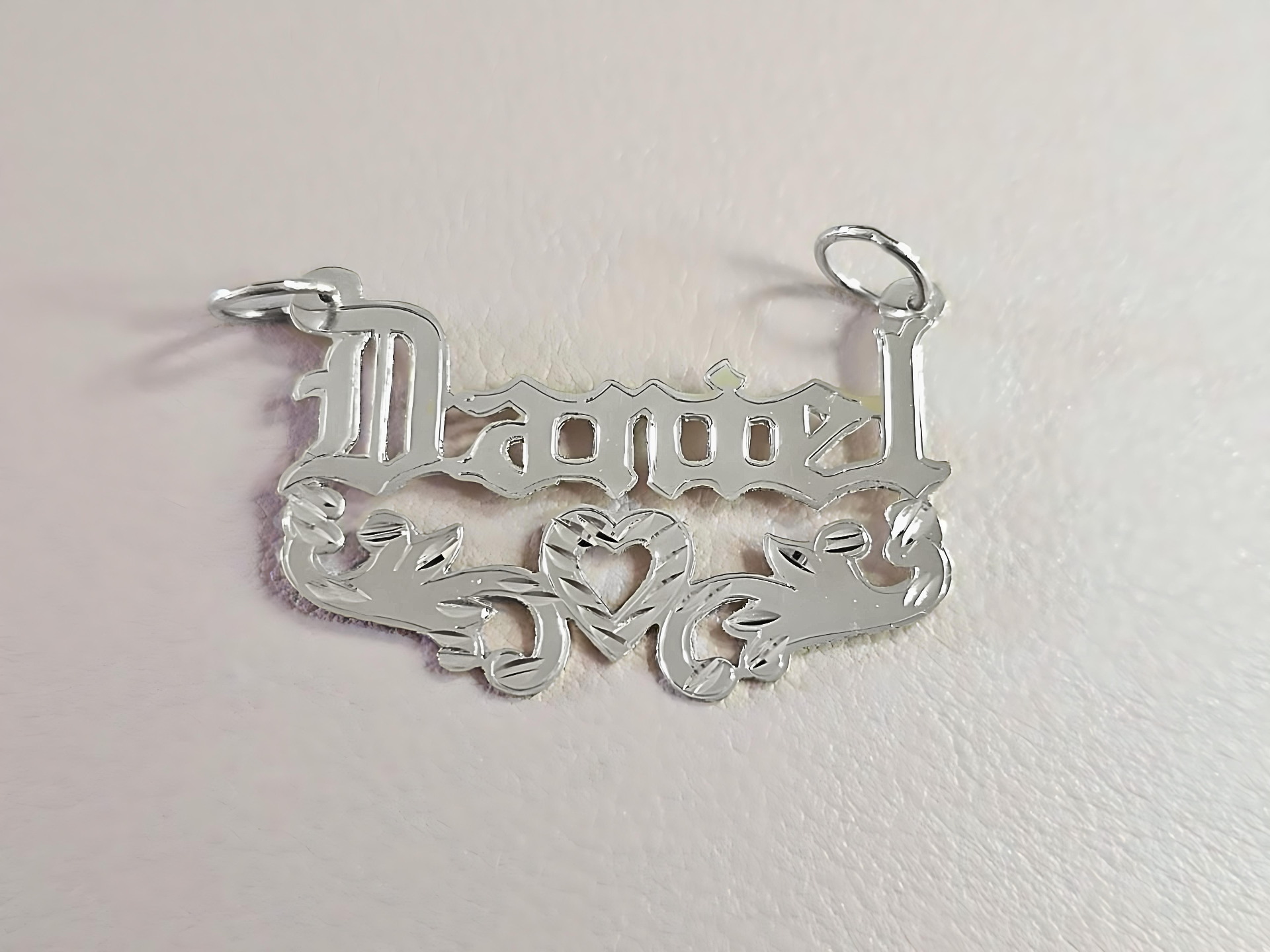 925 Sterling Silver Name Pendant Necklace with Old Text and Heart