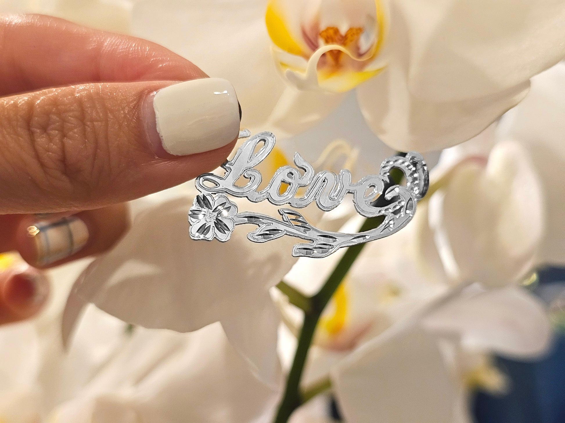 925 Sterling Silver Name Pendant Necklace with Rose Design