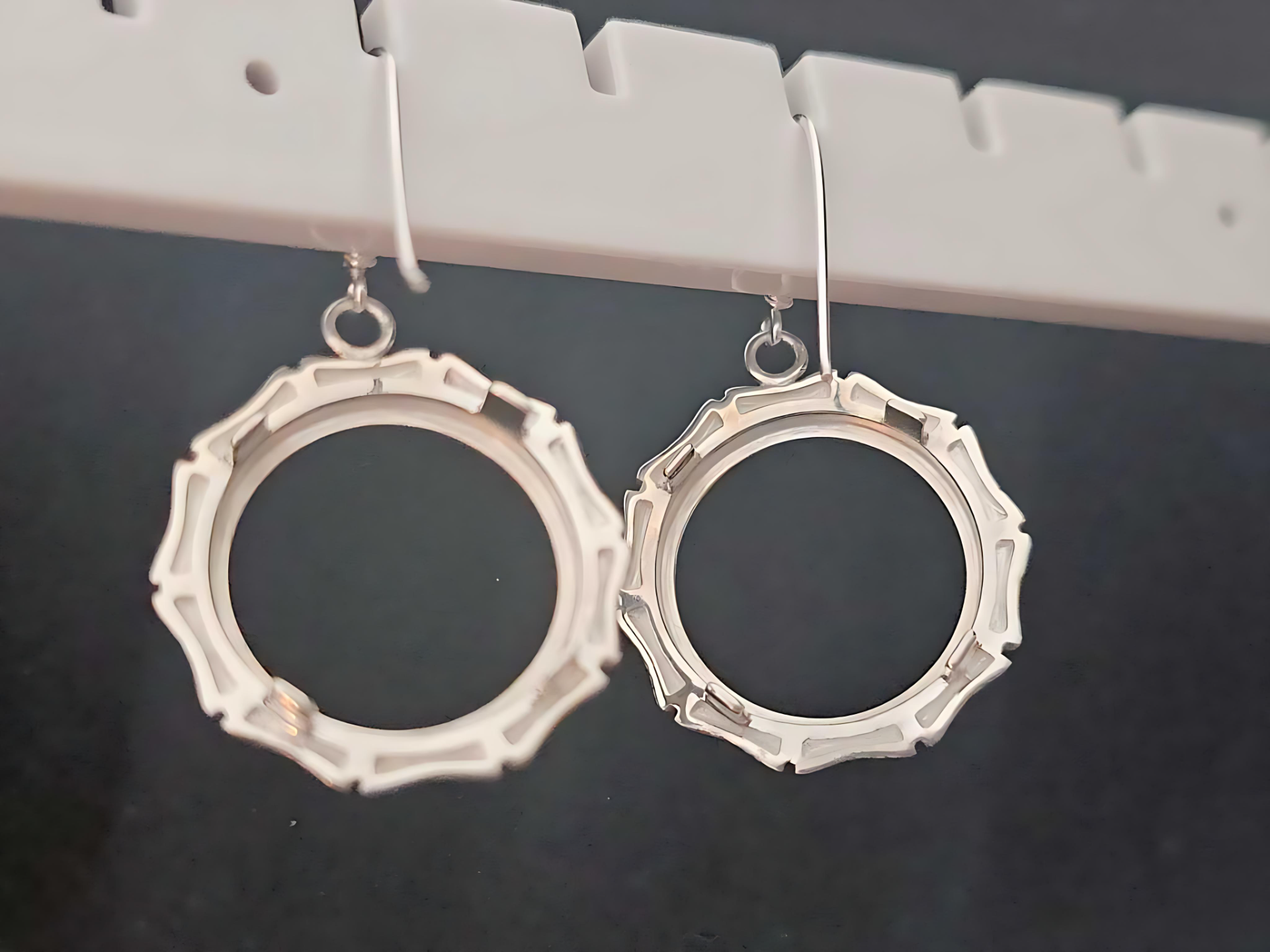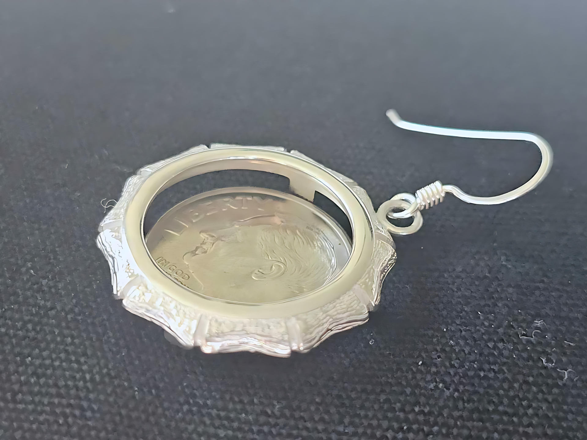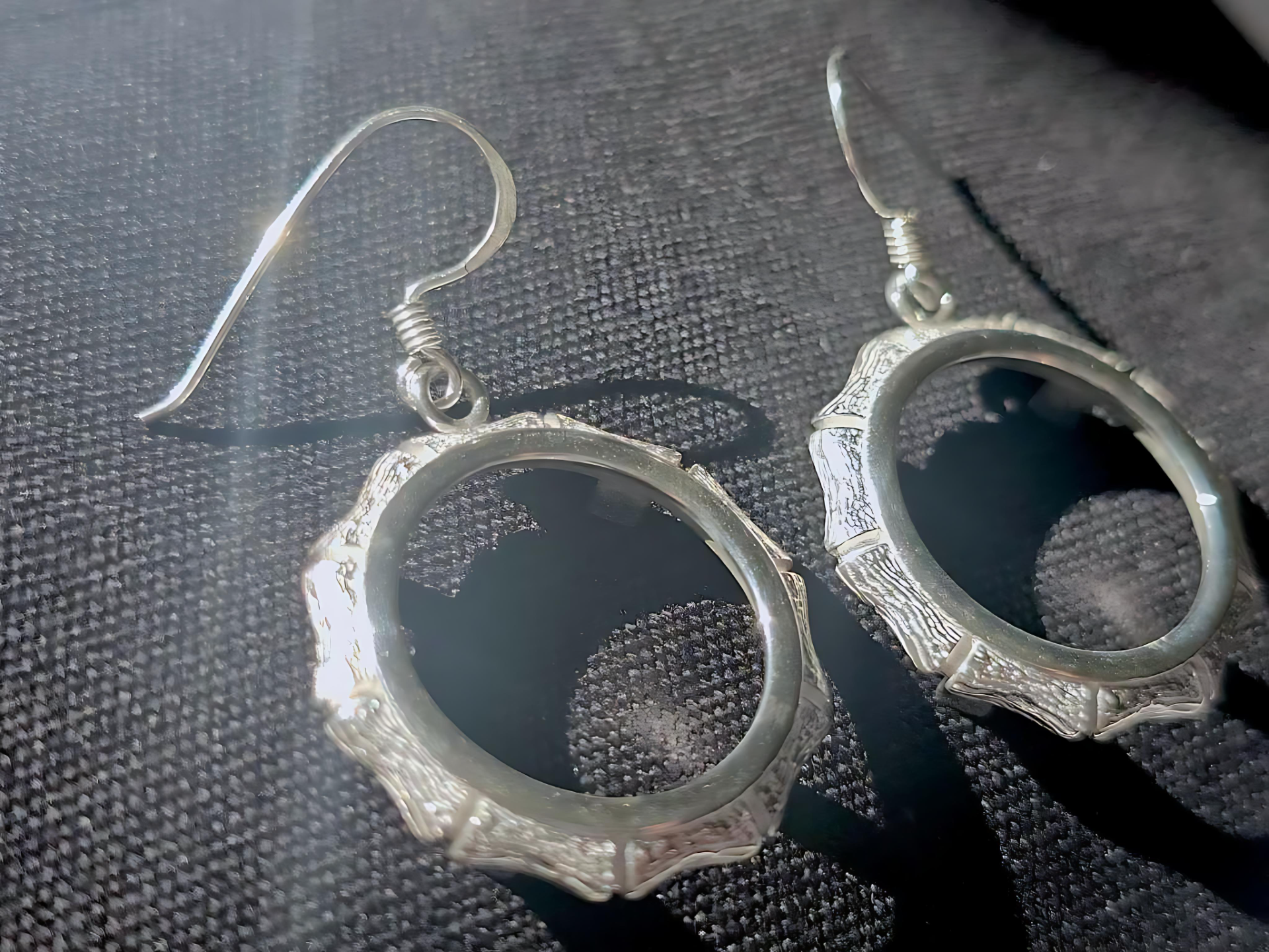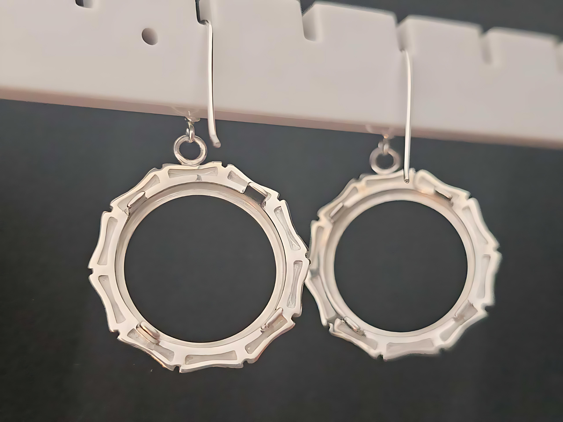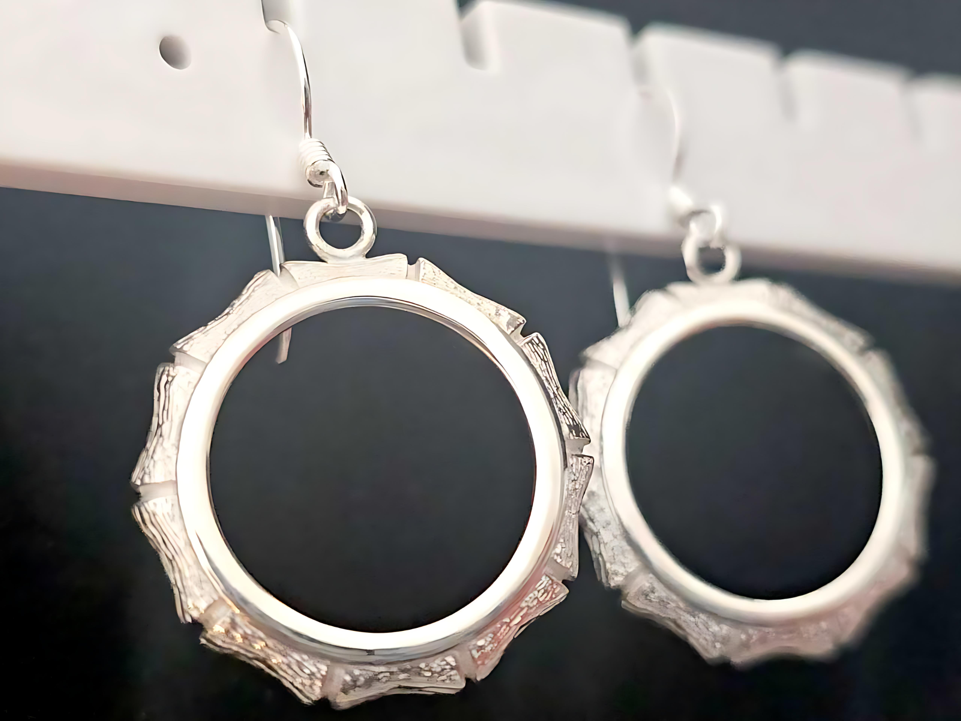 925 Sterling Silver Prong Back Bamboo Edge Bezel Earring for 18mm 10 Cent Coins