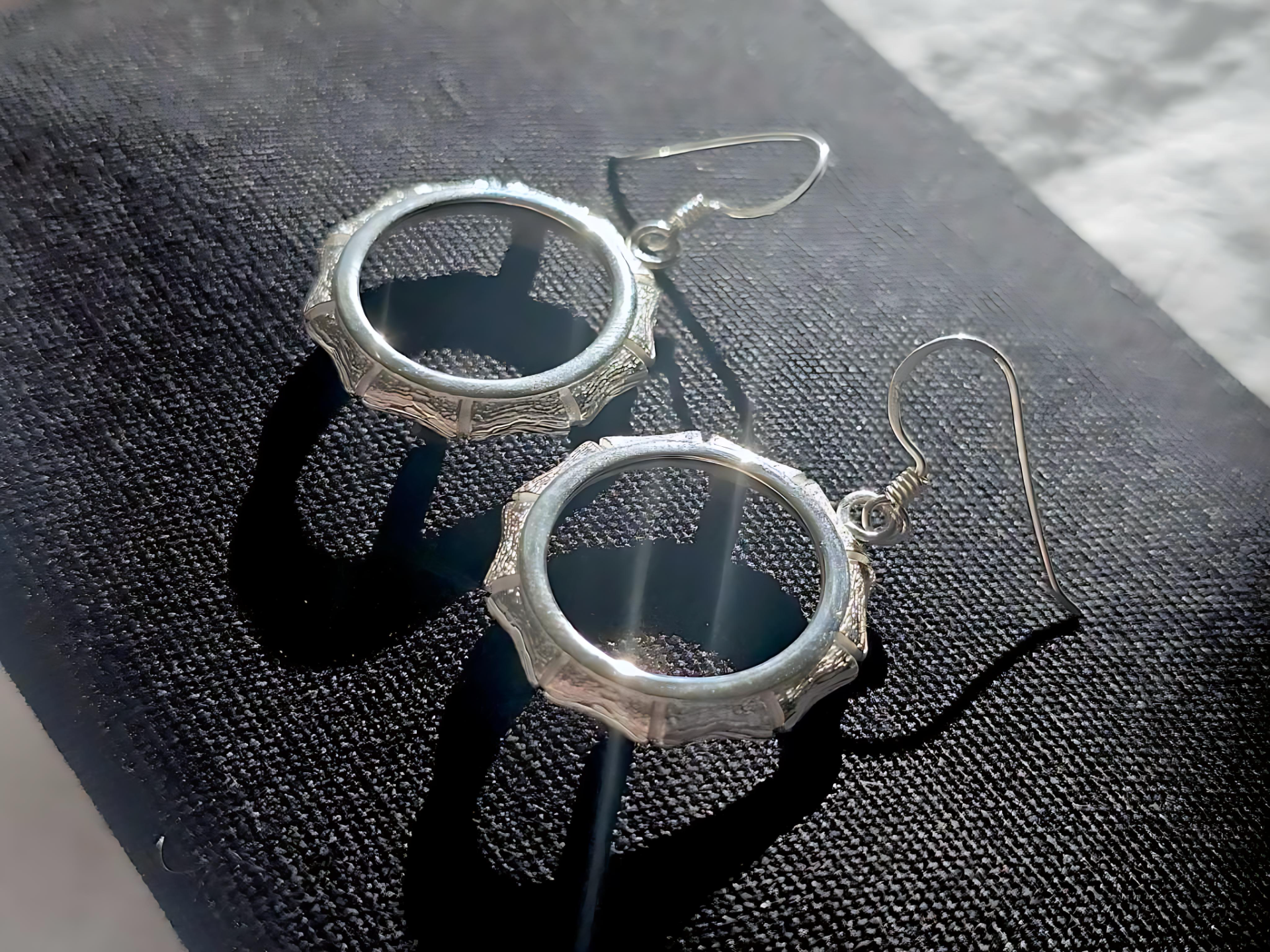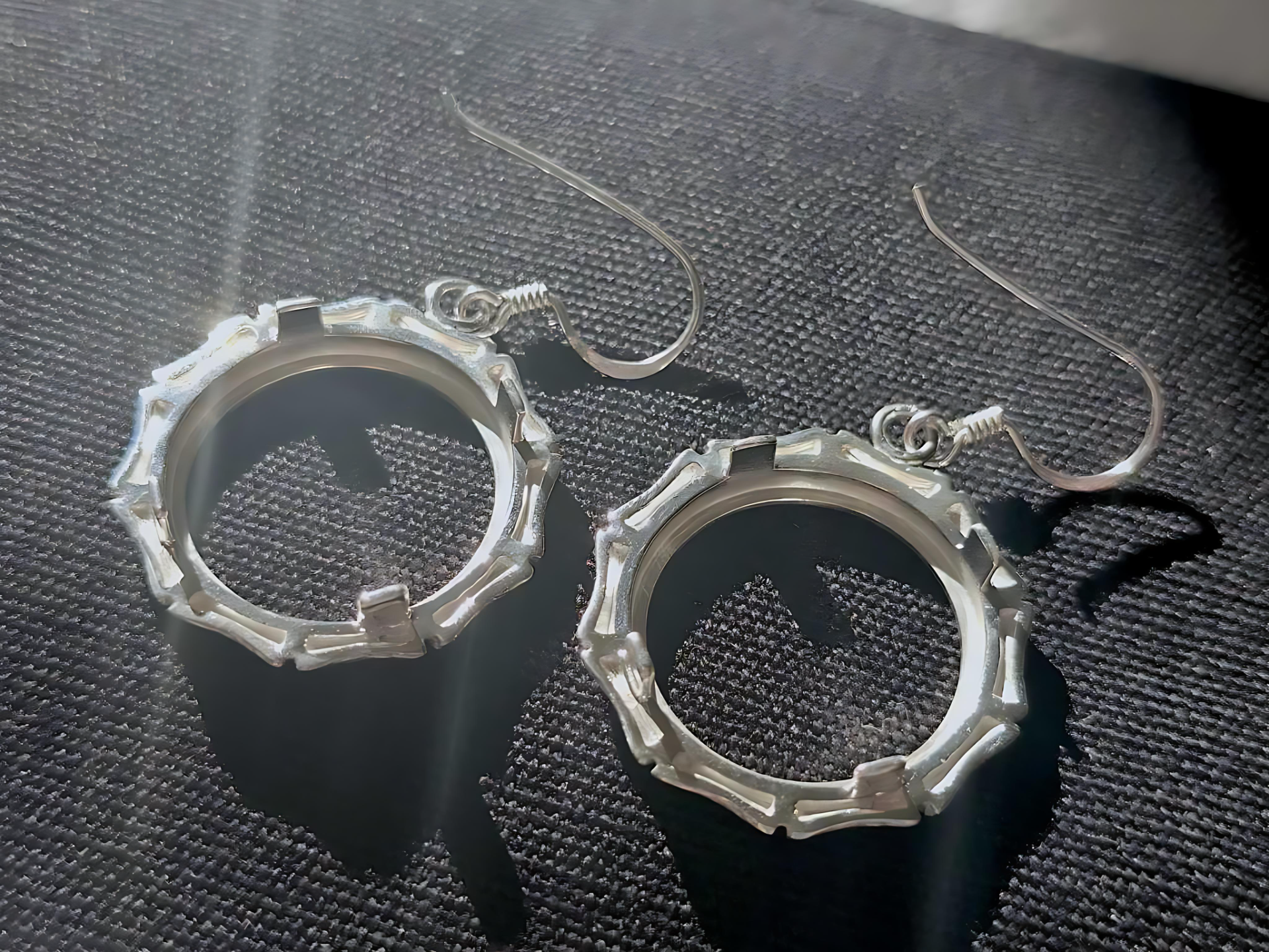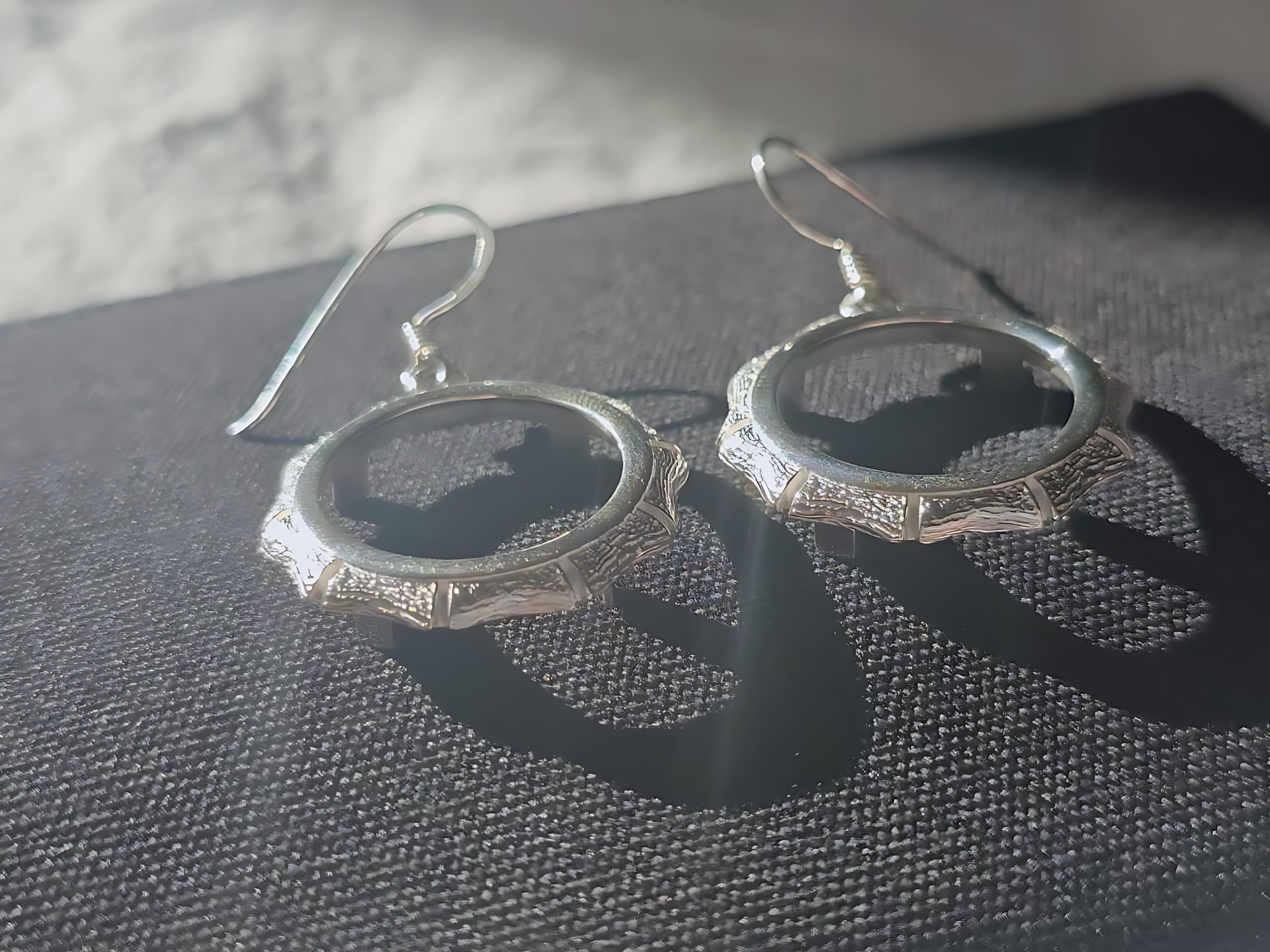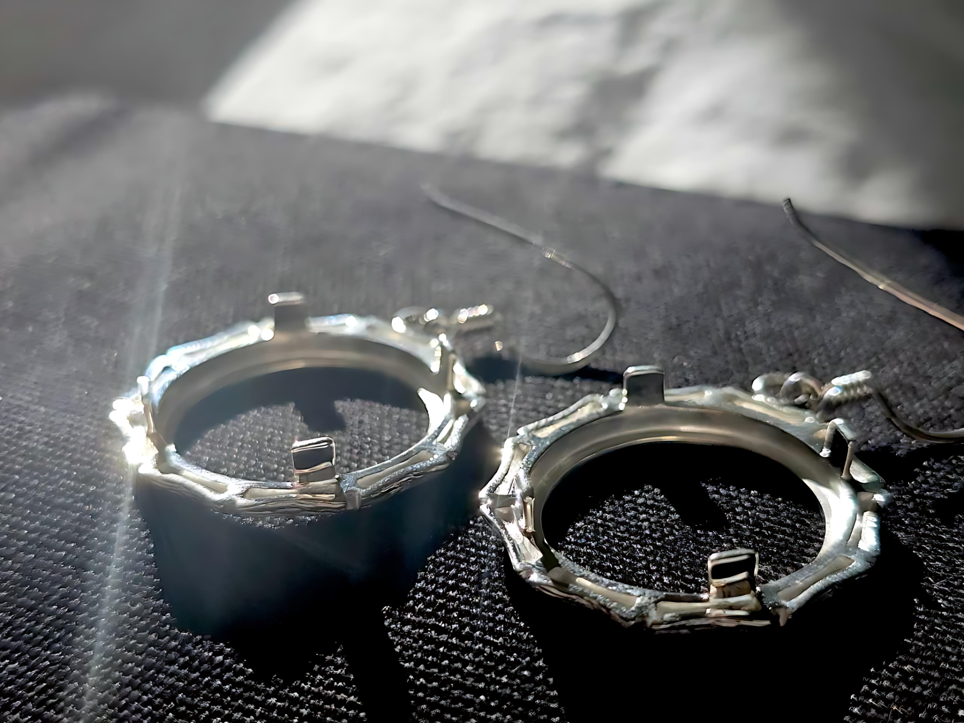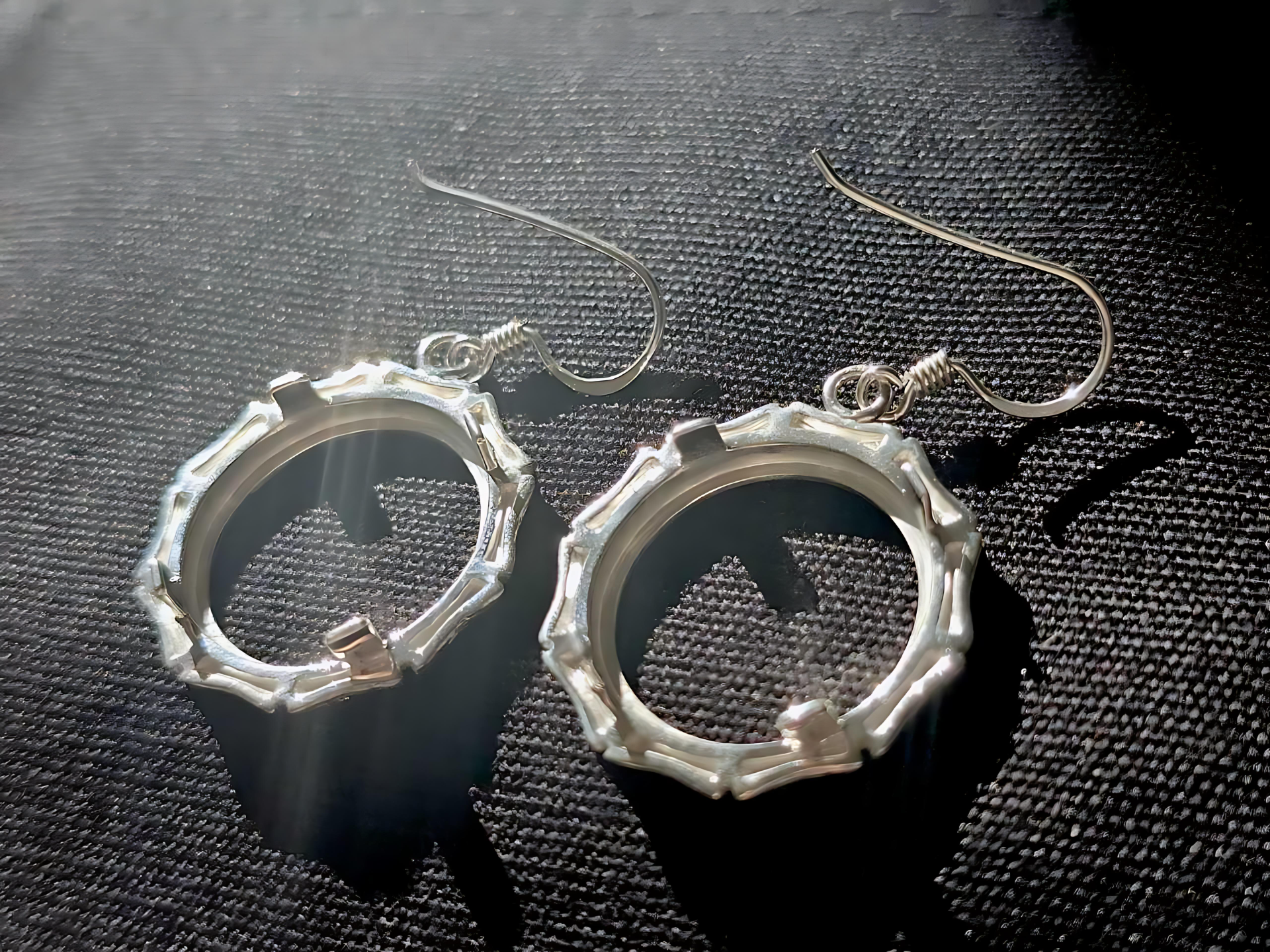 925 Sterling Silver Prong Back Bamboo Edge Bezel Earring for 18mm 10 Cent Coins