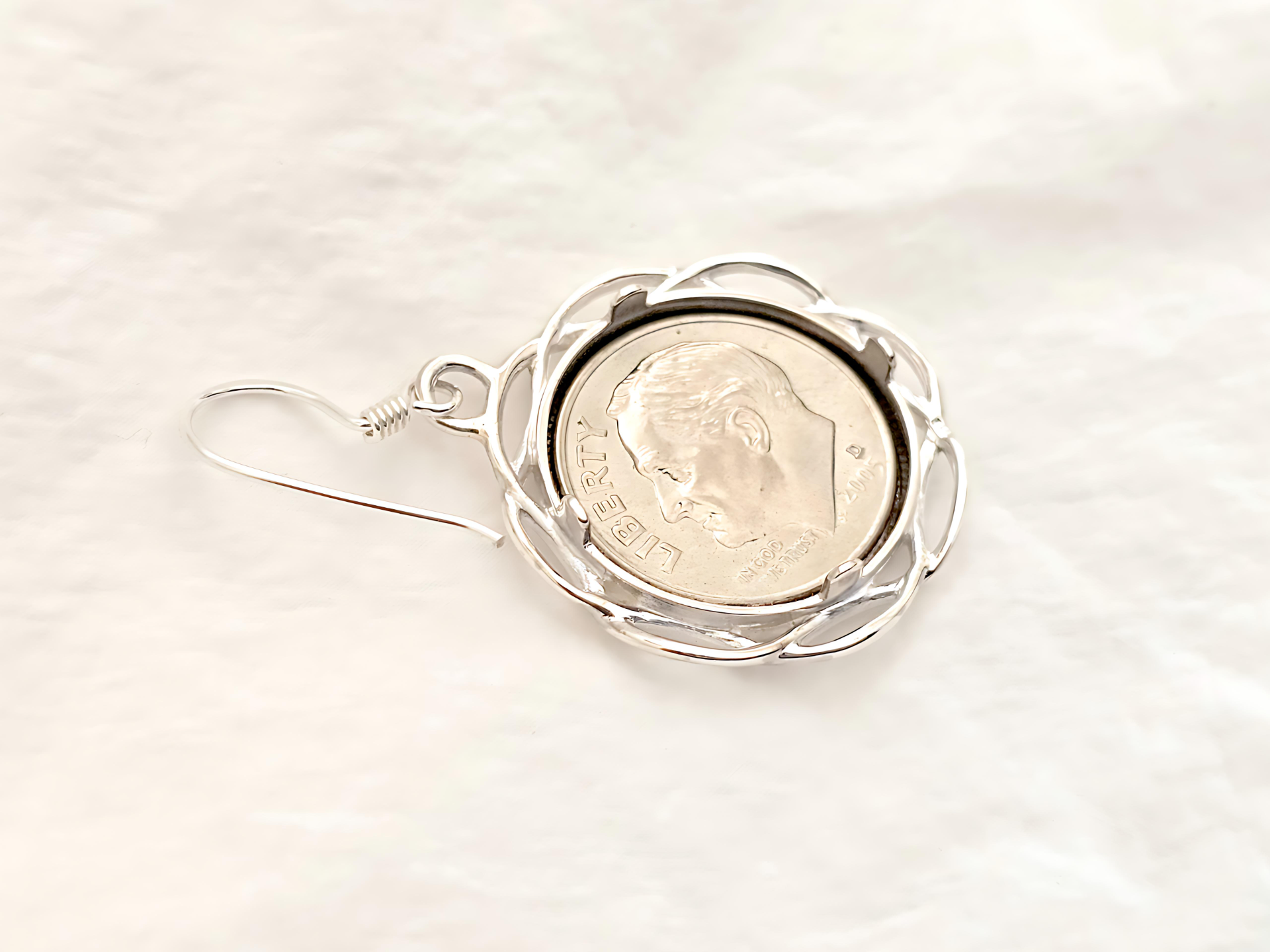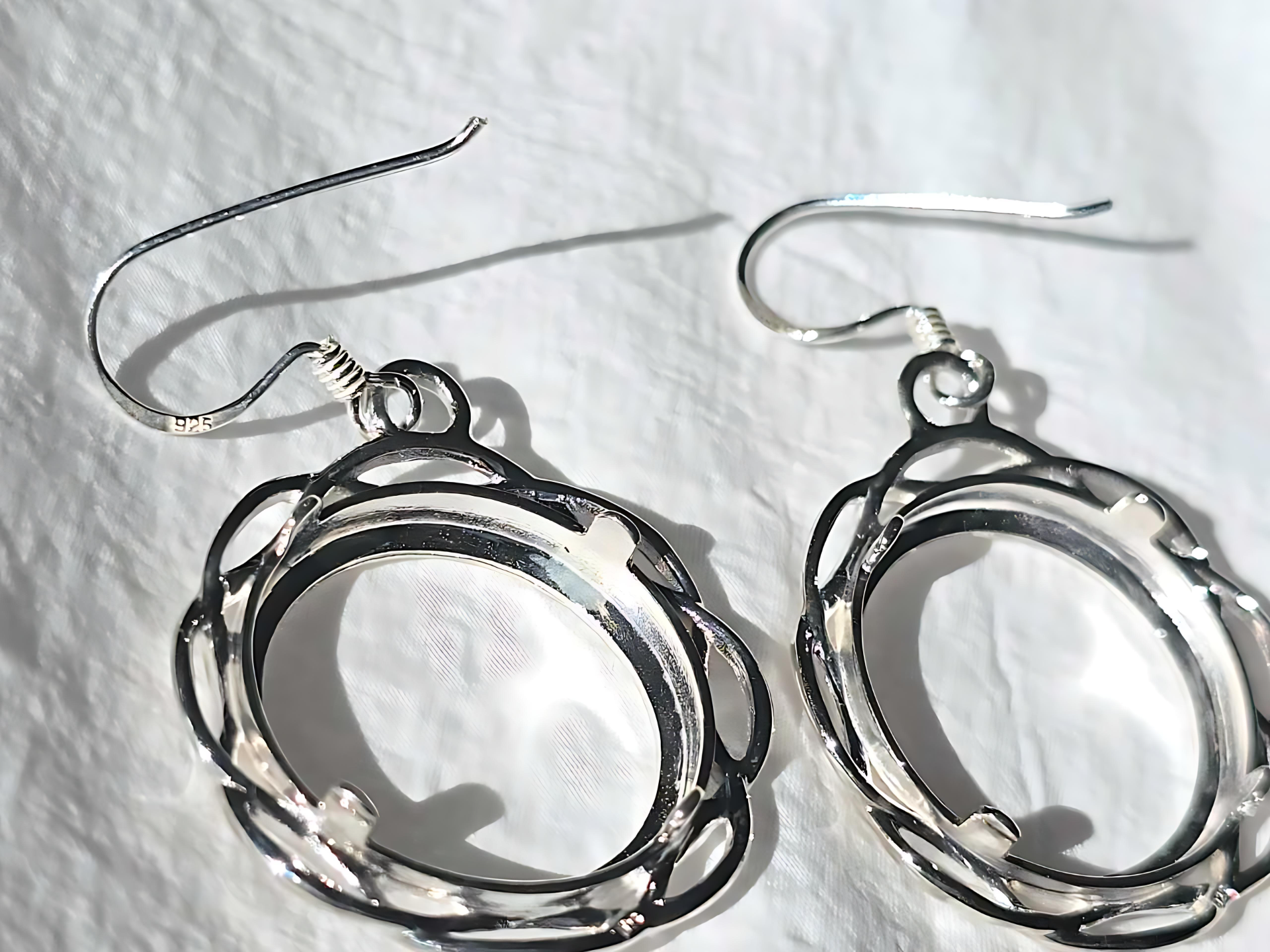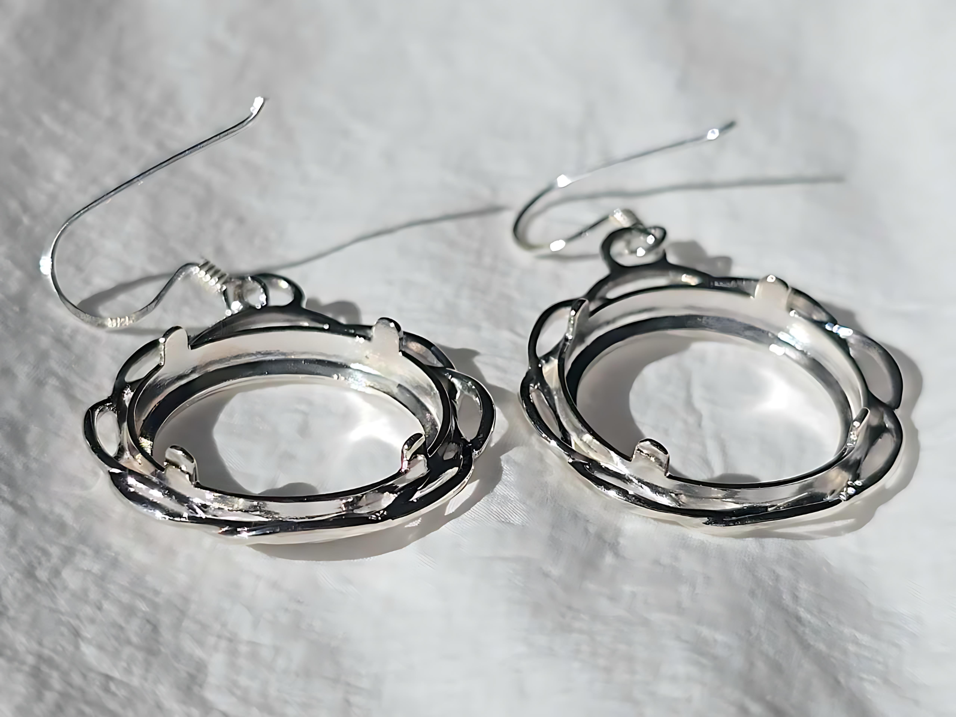 925 Sterling Silver Prong Back Braided Edge Bezel Earring for 18mm 10 Cent Coins