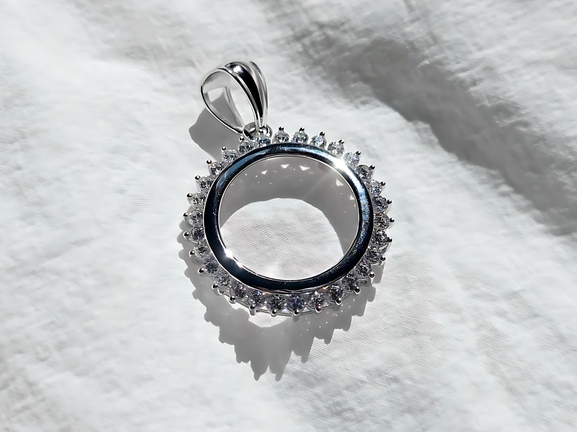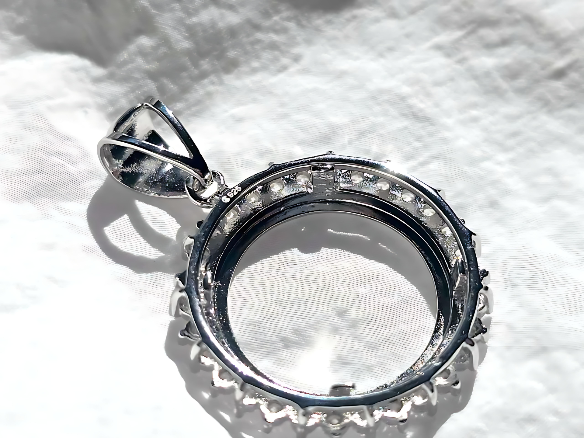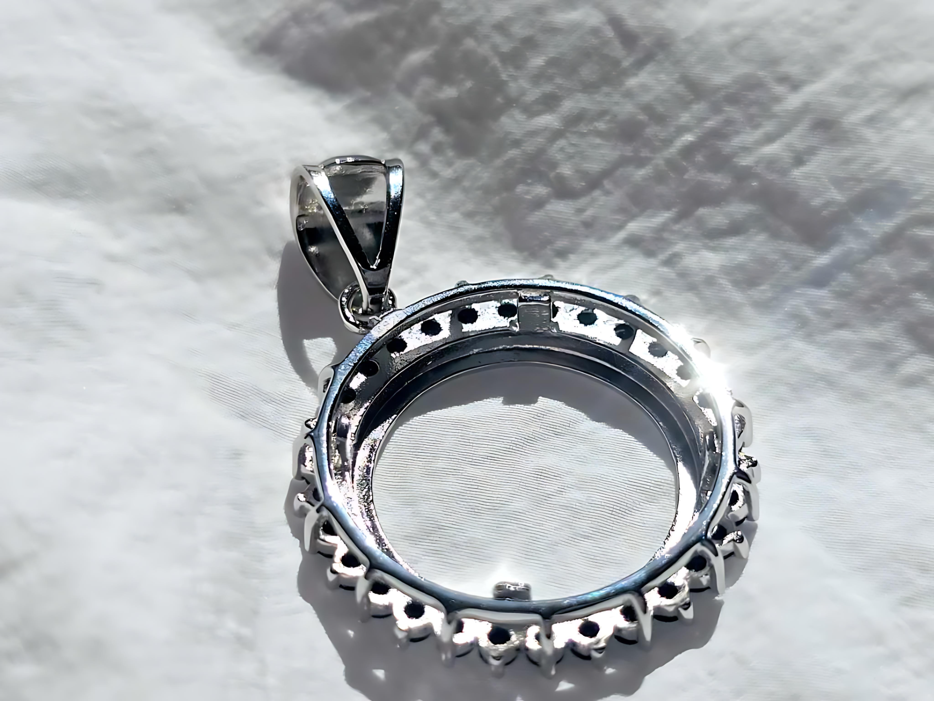925 Sterling Silver Prong Back Cubic Zirconia CZ Halo Bezel for 18mm Dime 10 Cent Coins