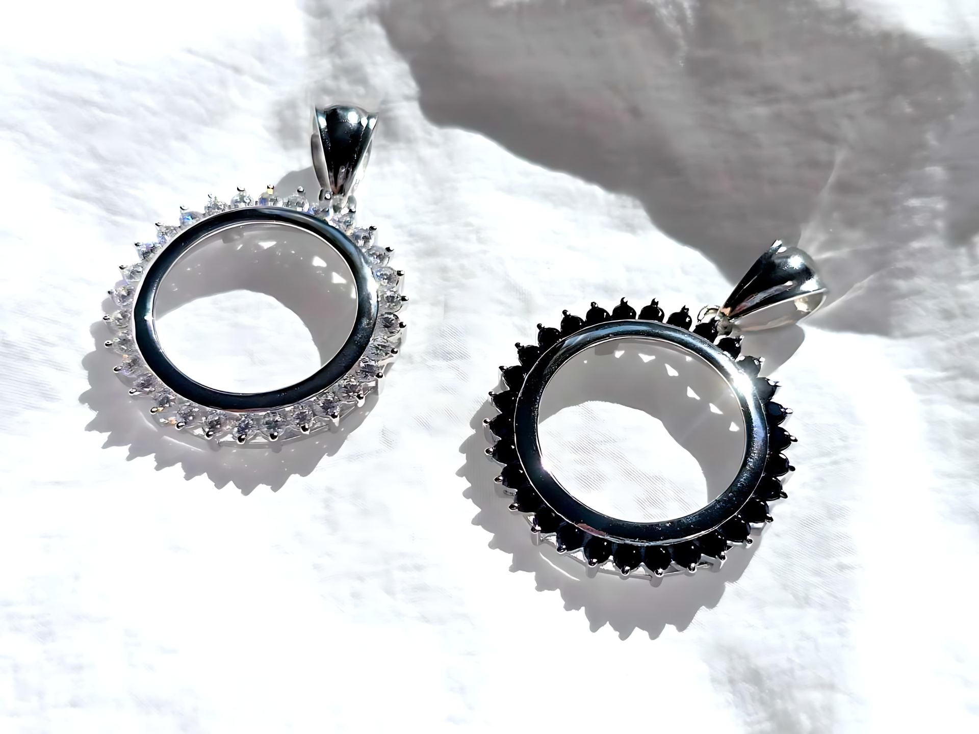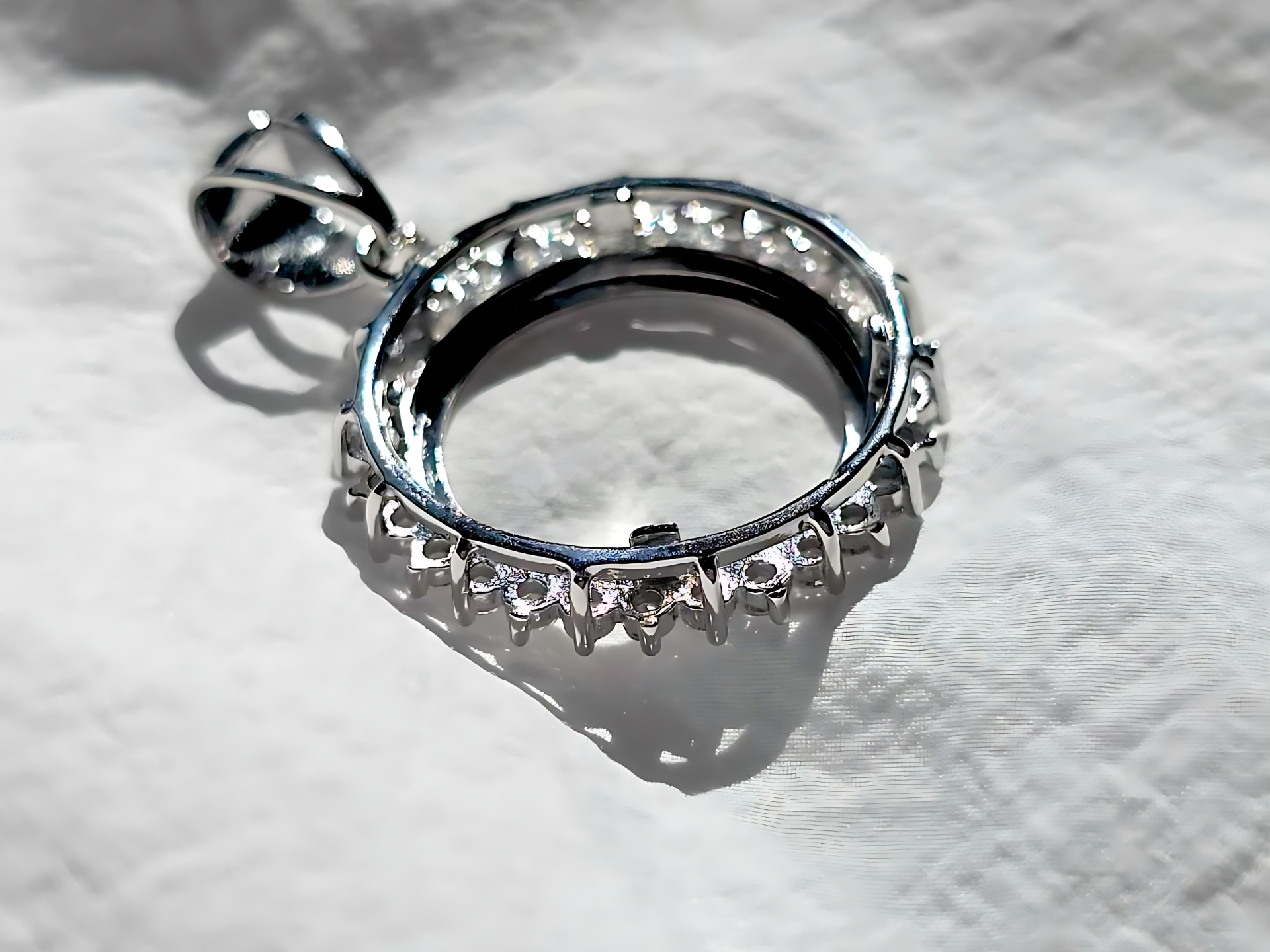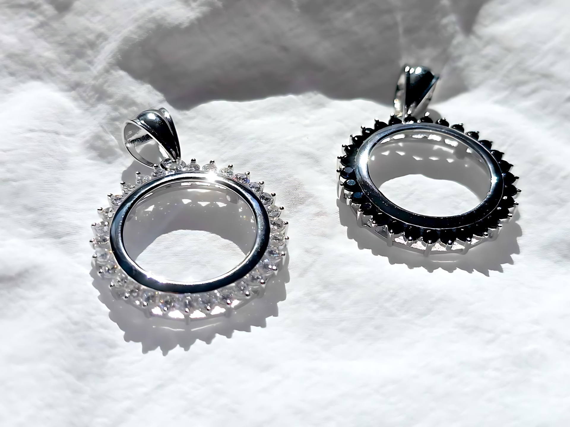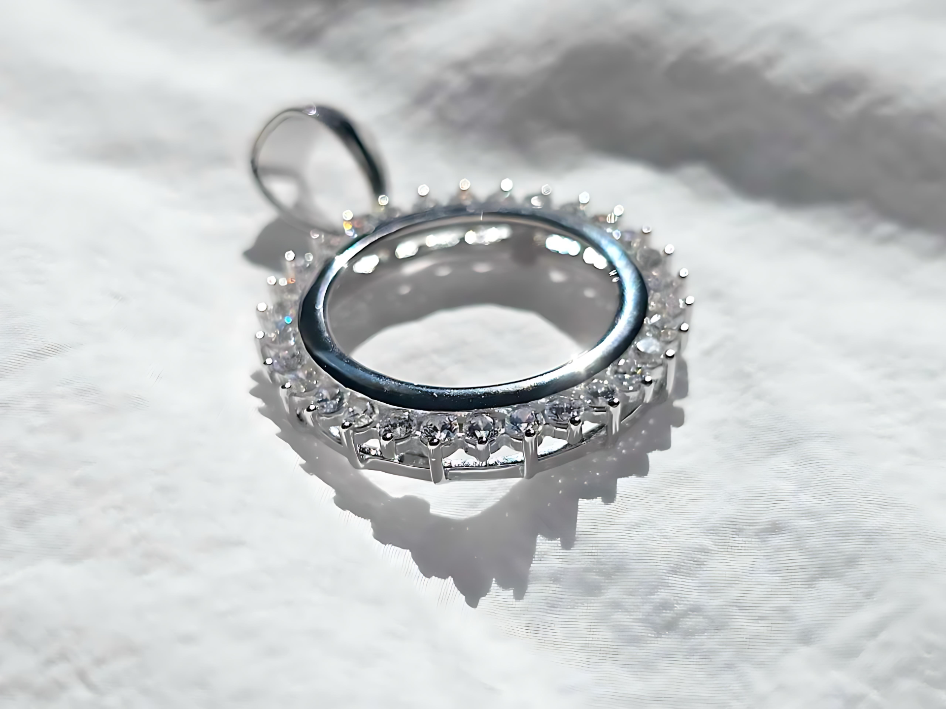 925 Sterling Silver Prong Back Cubic Zirconia CZ Halo Bezel for 18mm Dime 10 Cent Coins
