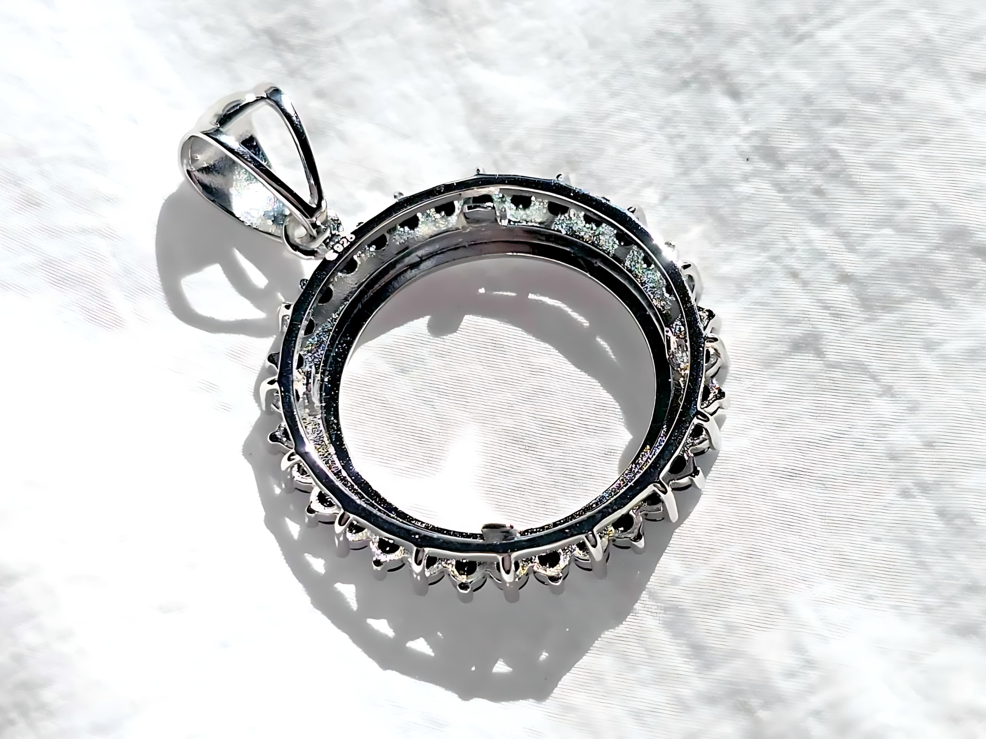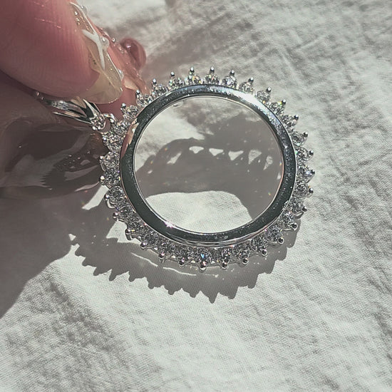 925 Sterling Silver Prong Back Cubic Zirconia CZ Halo Bezel for 19mm Penny 1 Cent Coins
