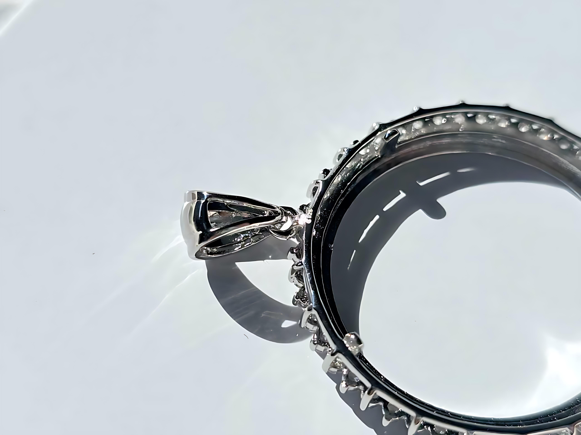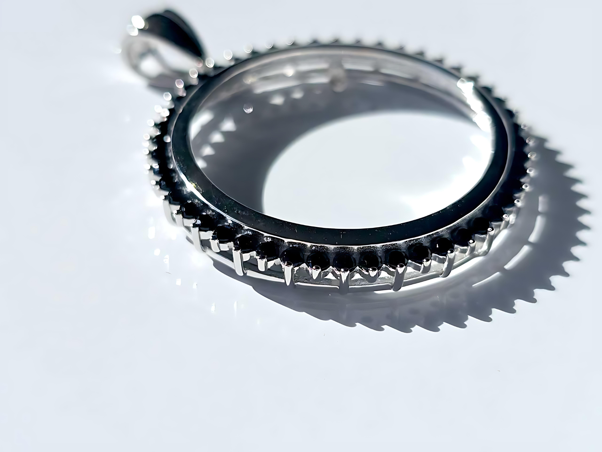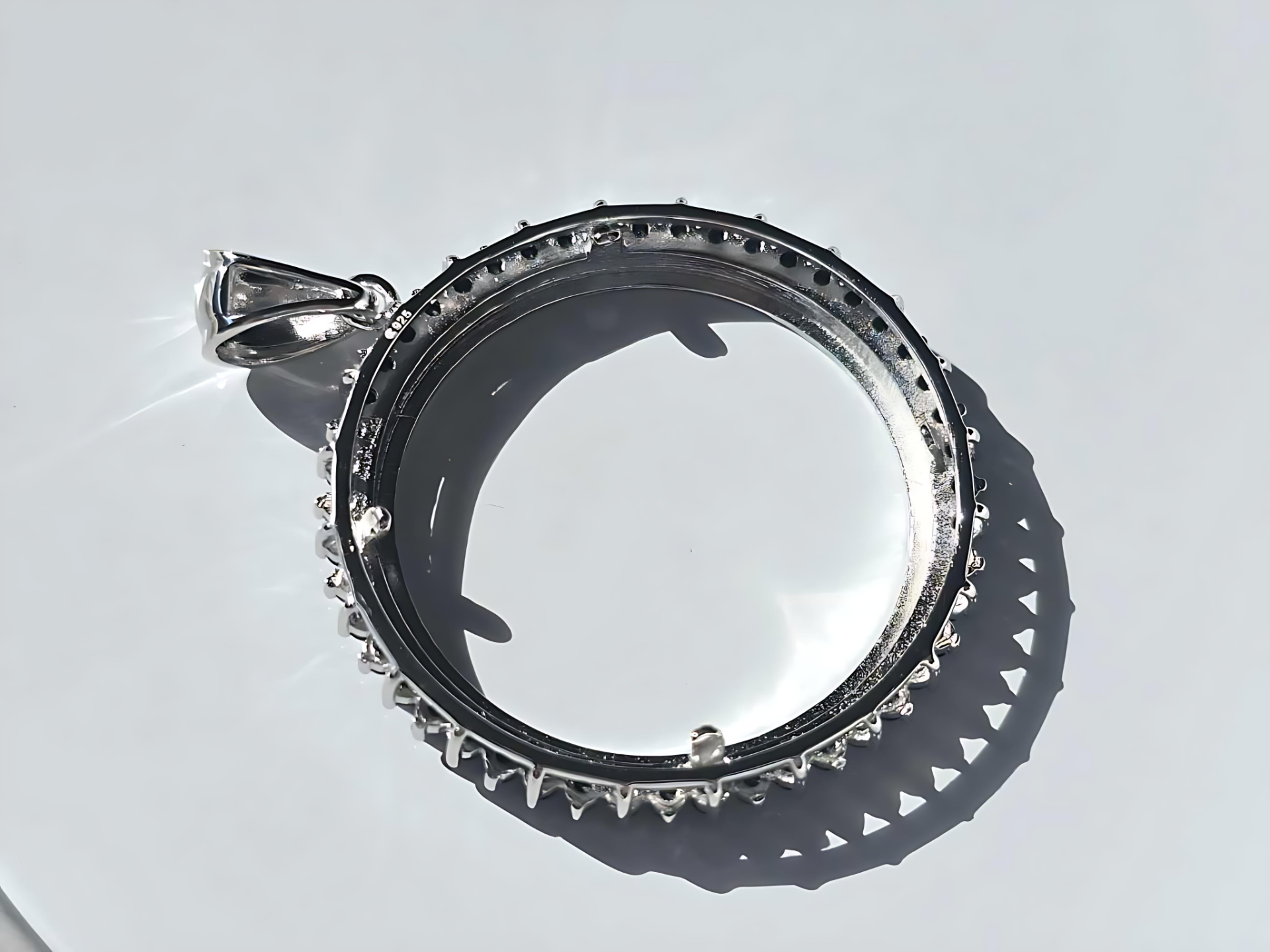 925 Sterling Silver Prong Back Cubic Zirconia CZ Halo Bezel for 30mm 50 Cent Coins