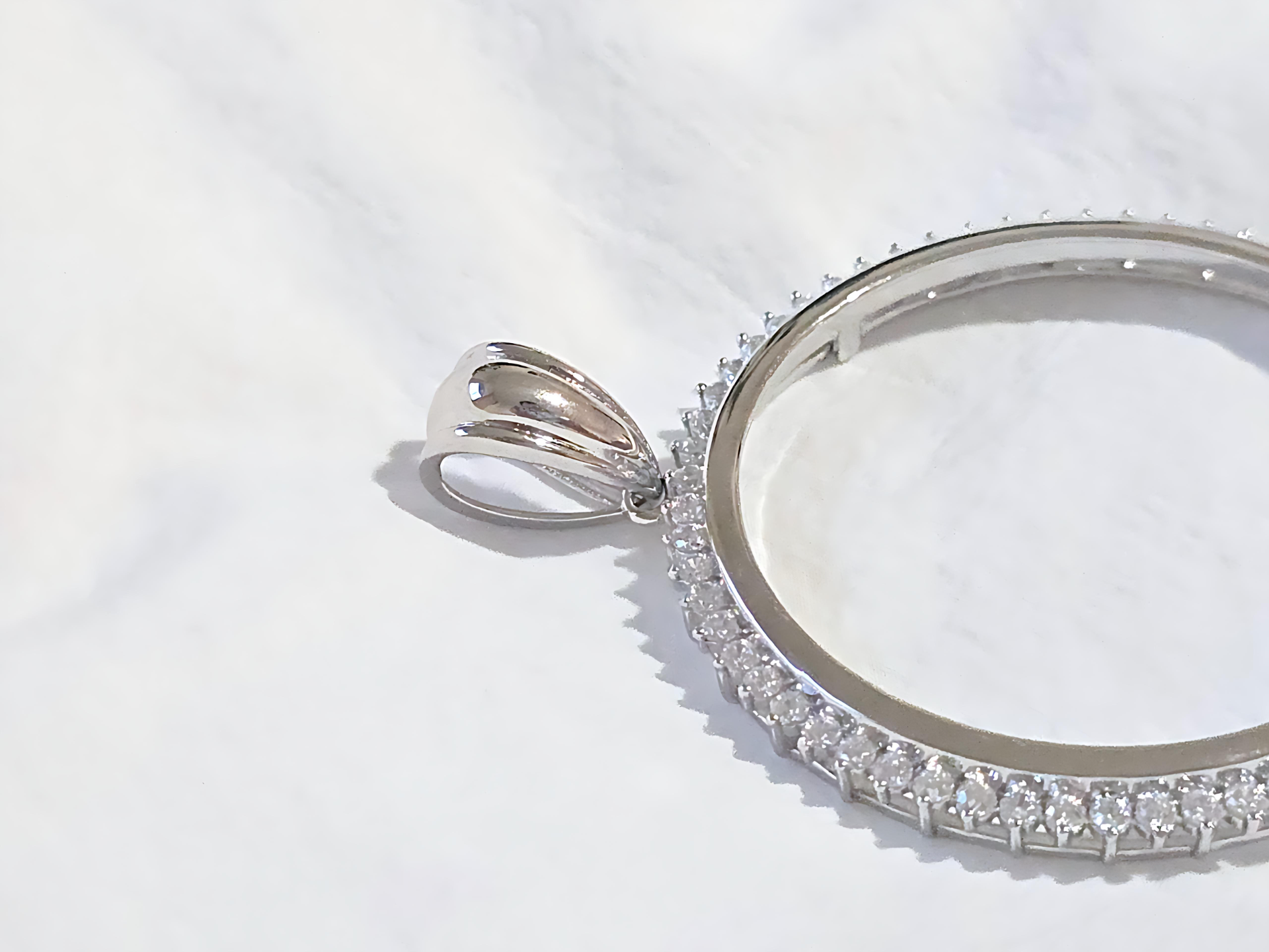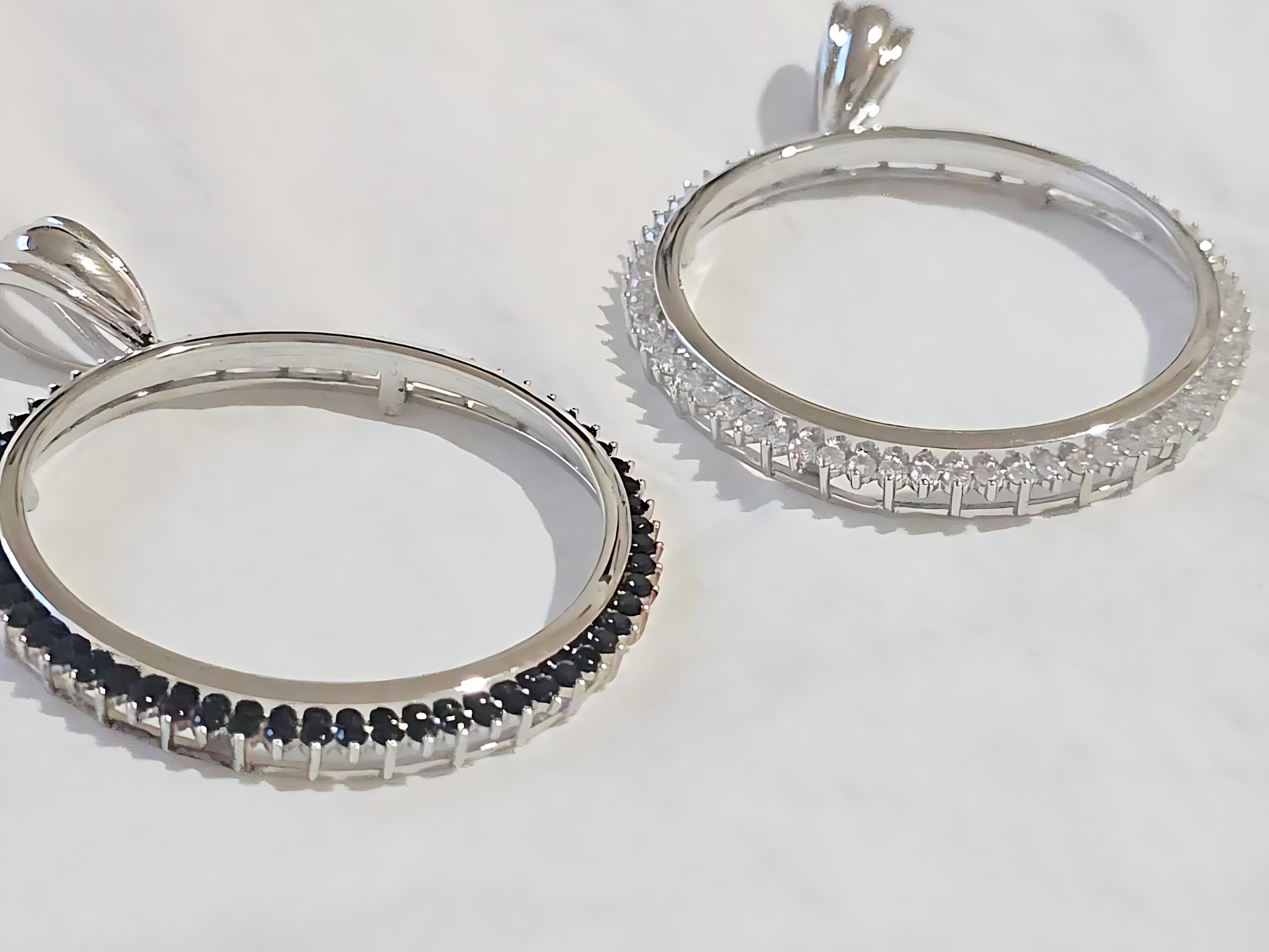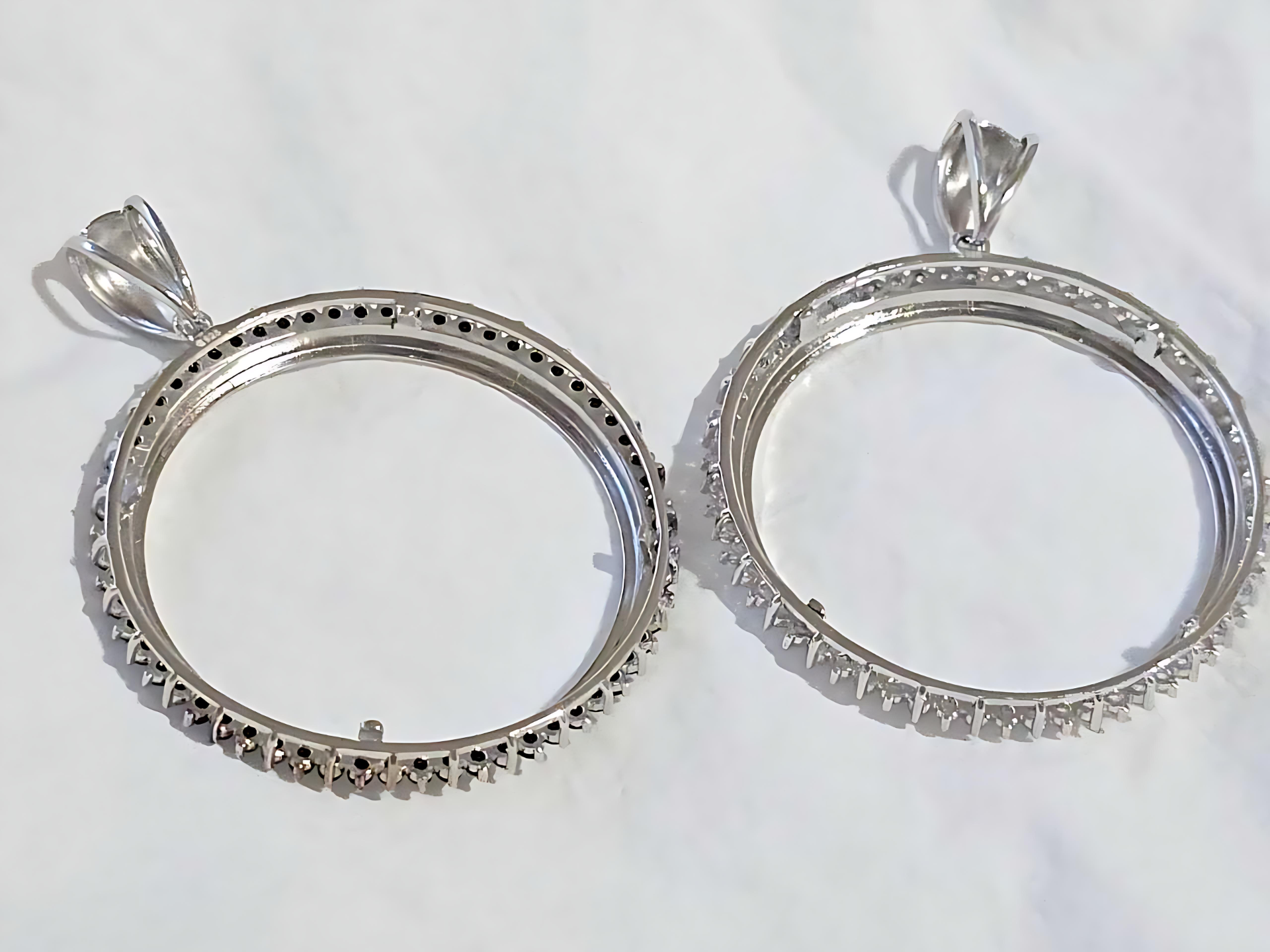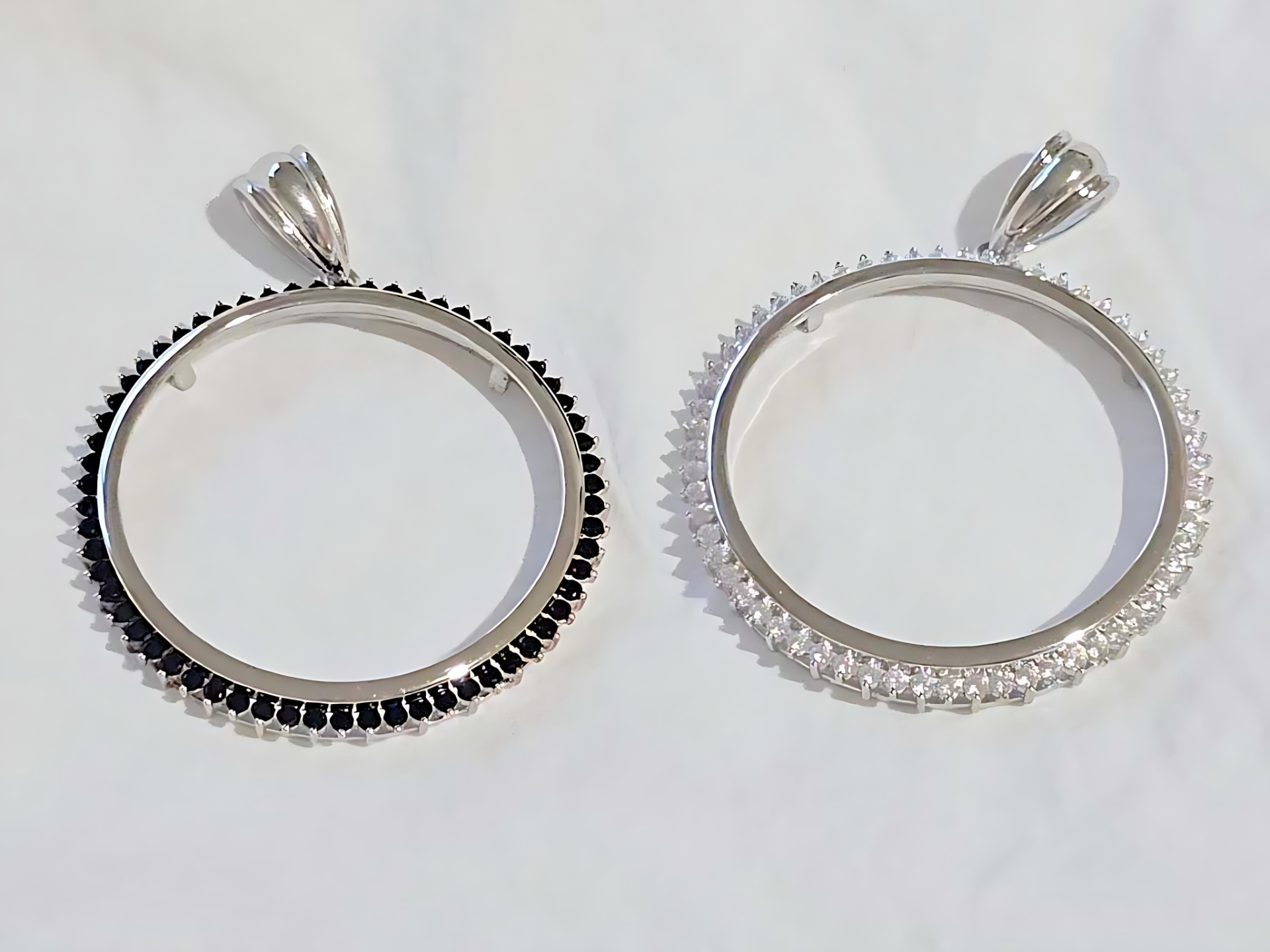925 Sterling Silver Prong Back Cubic Zirconia CZ Halo Bezel for 41mm 1 oz Coins