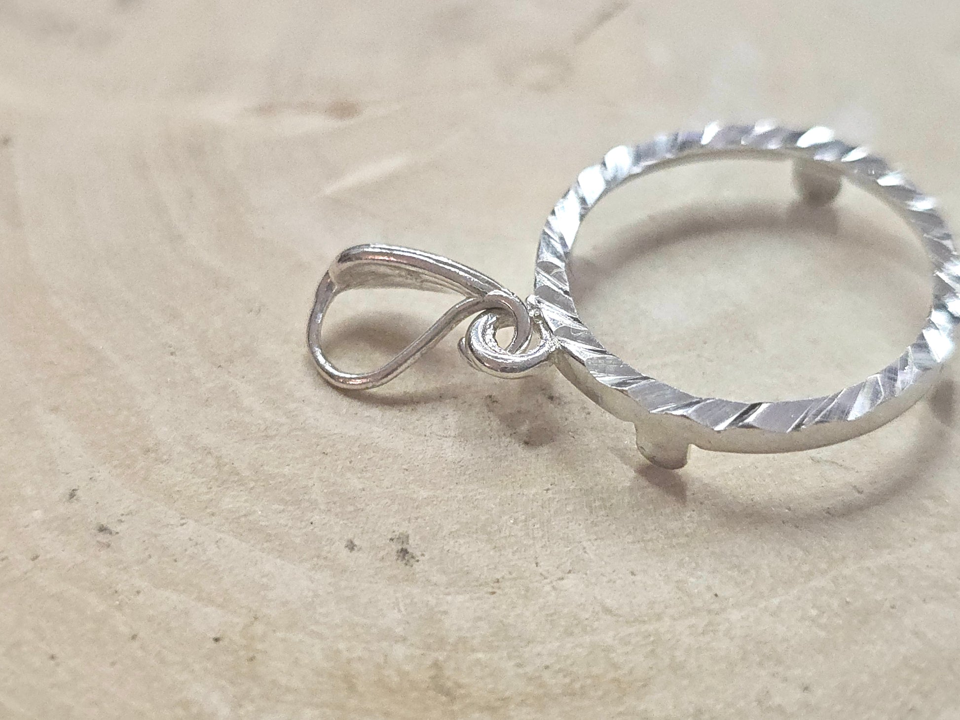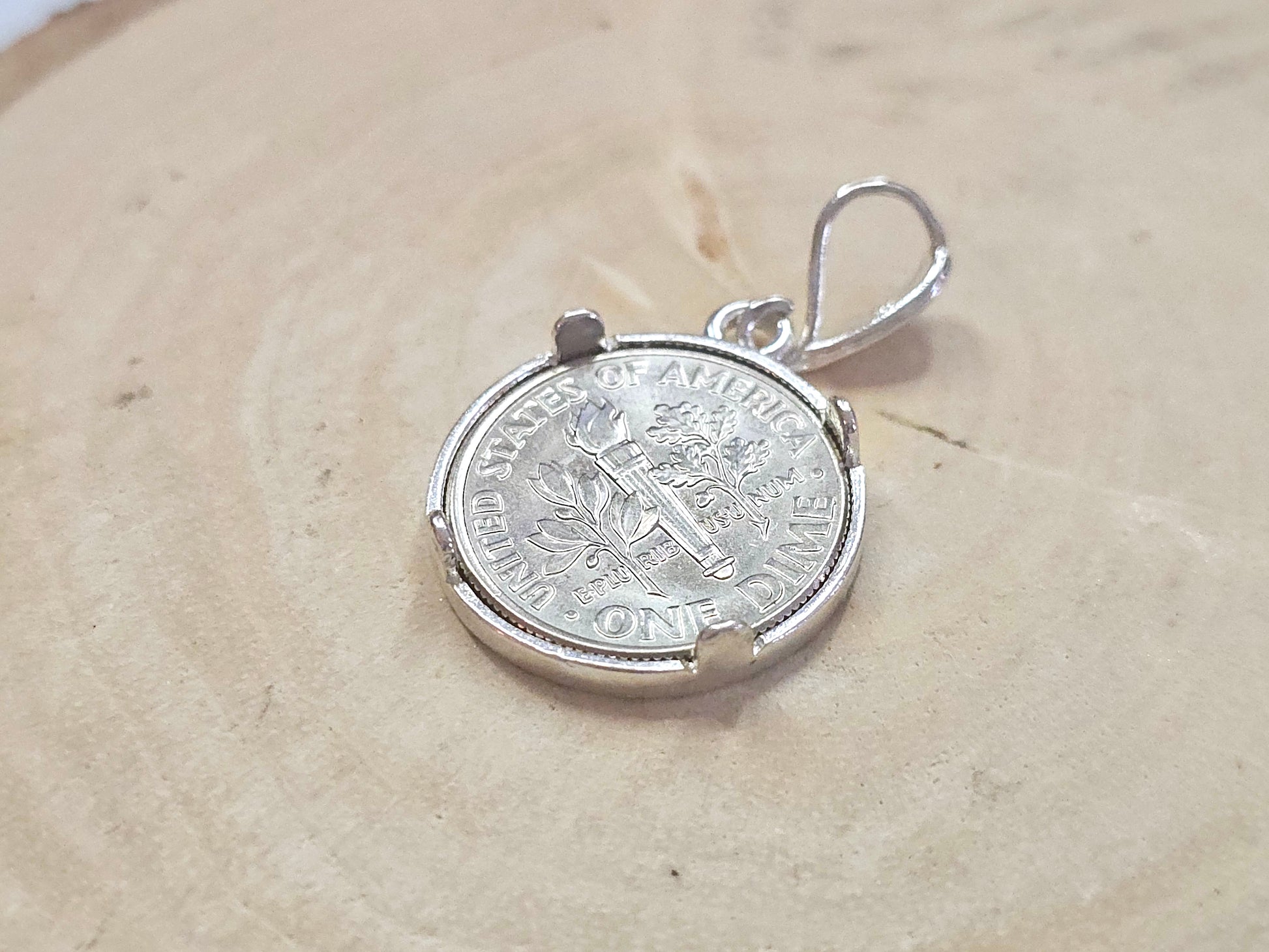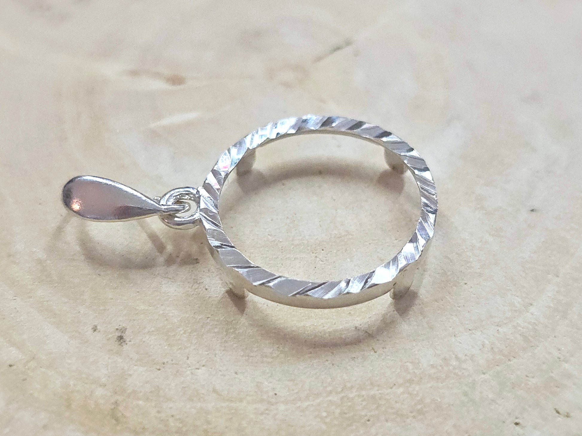 925 Sterling Silver Prong Back Diamond Cut Bezel for 18mm Dime 10 Cent Coins