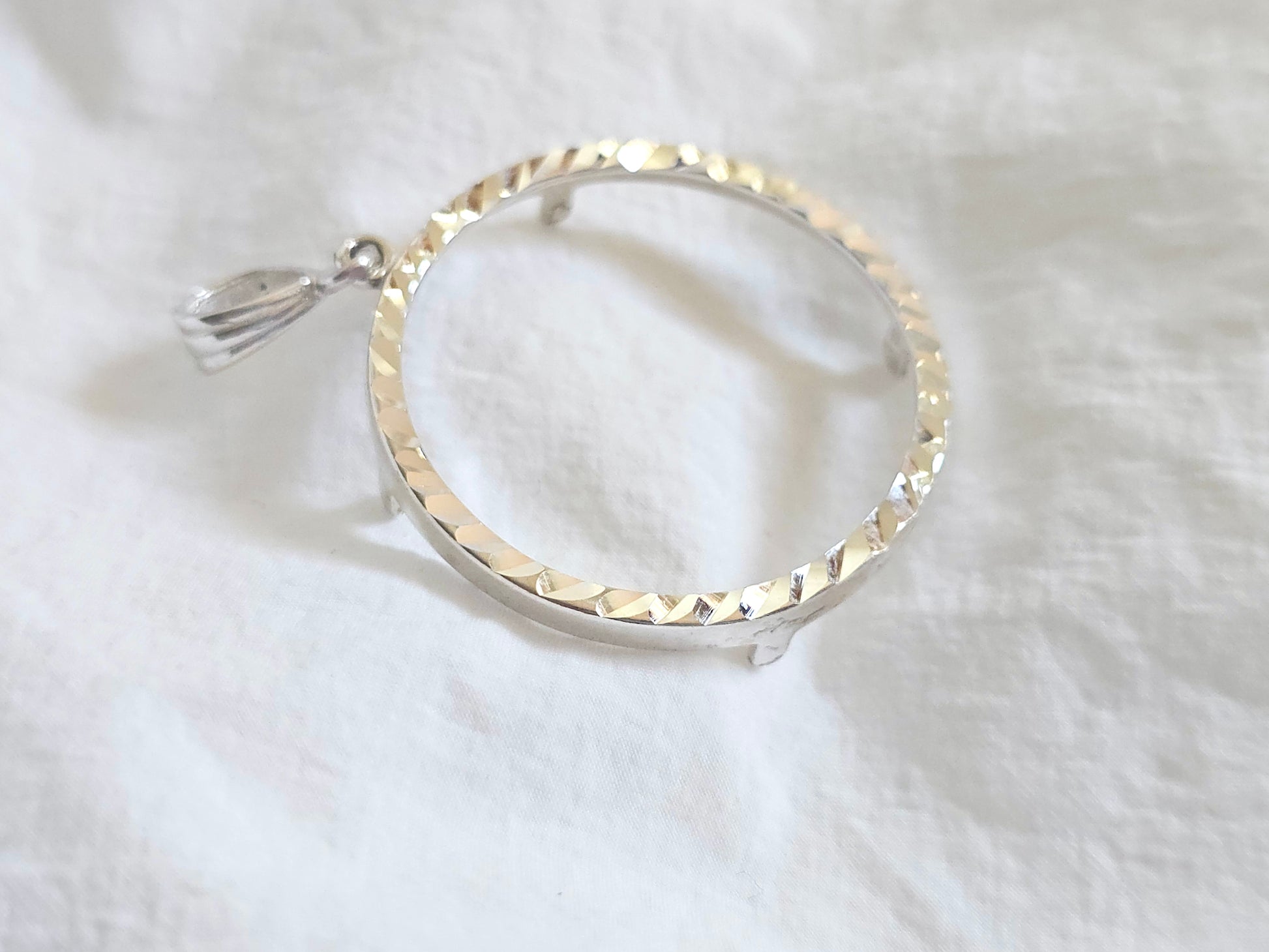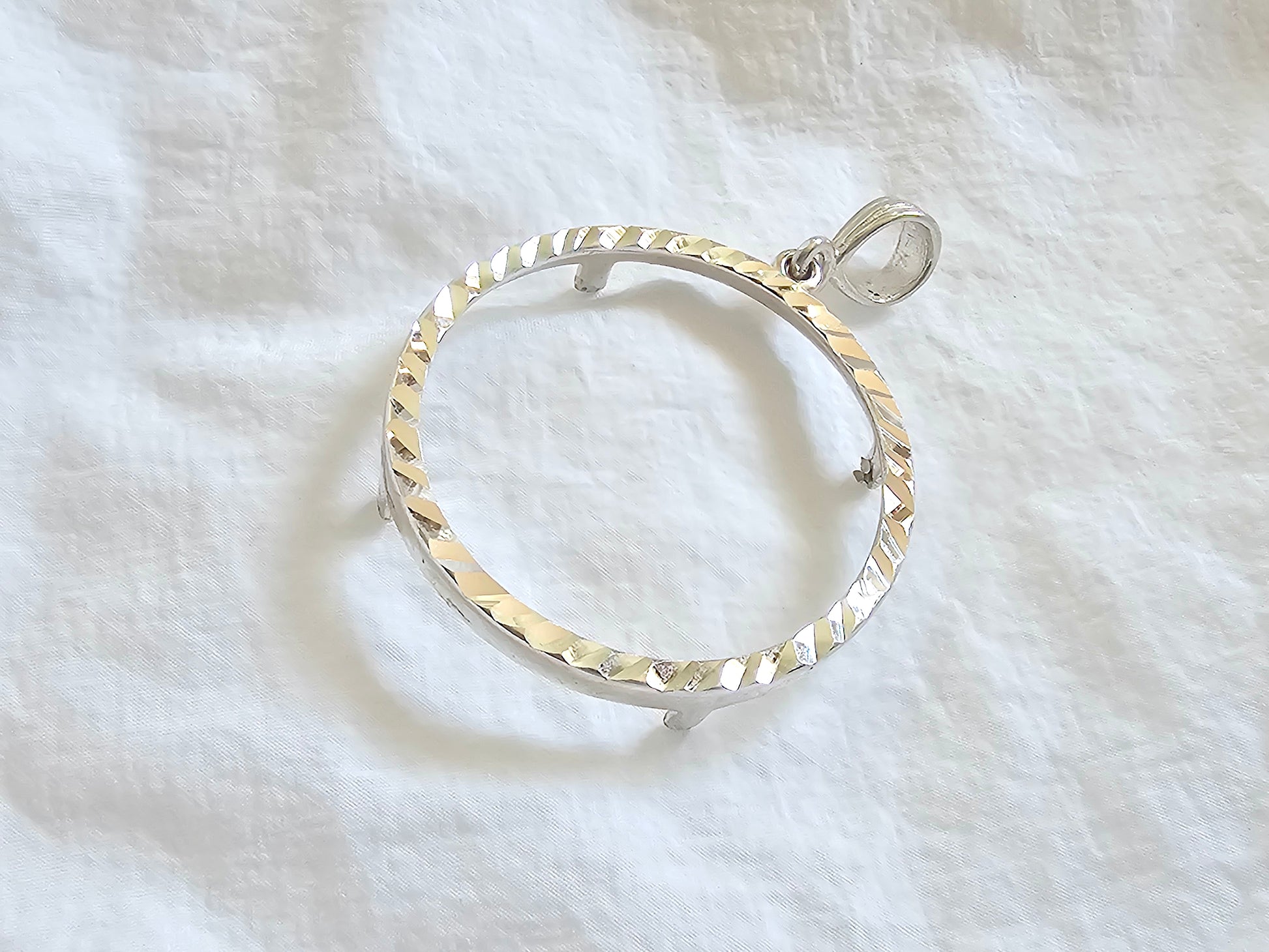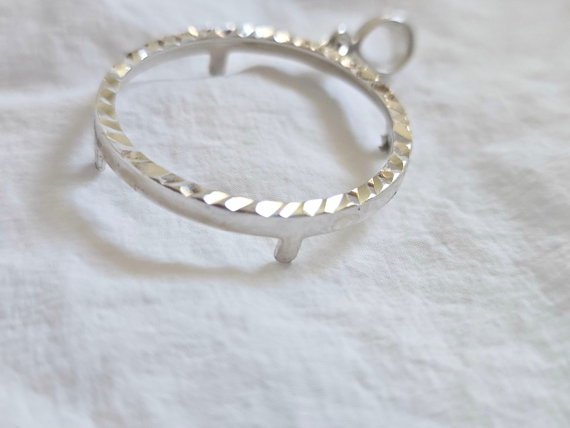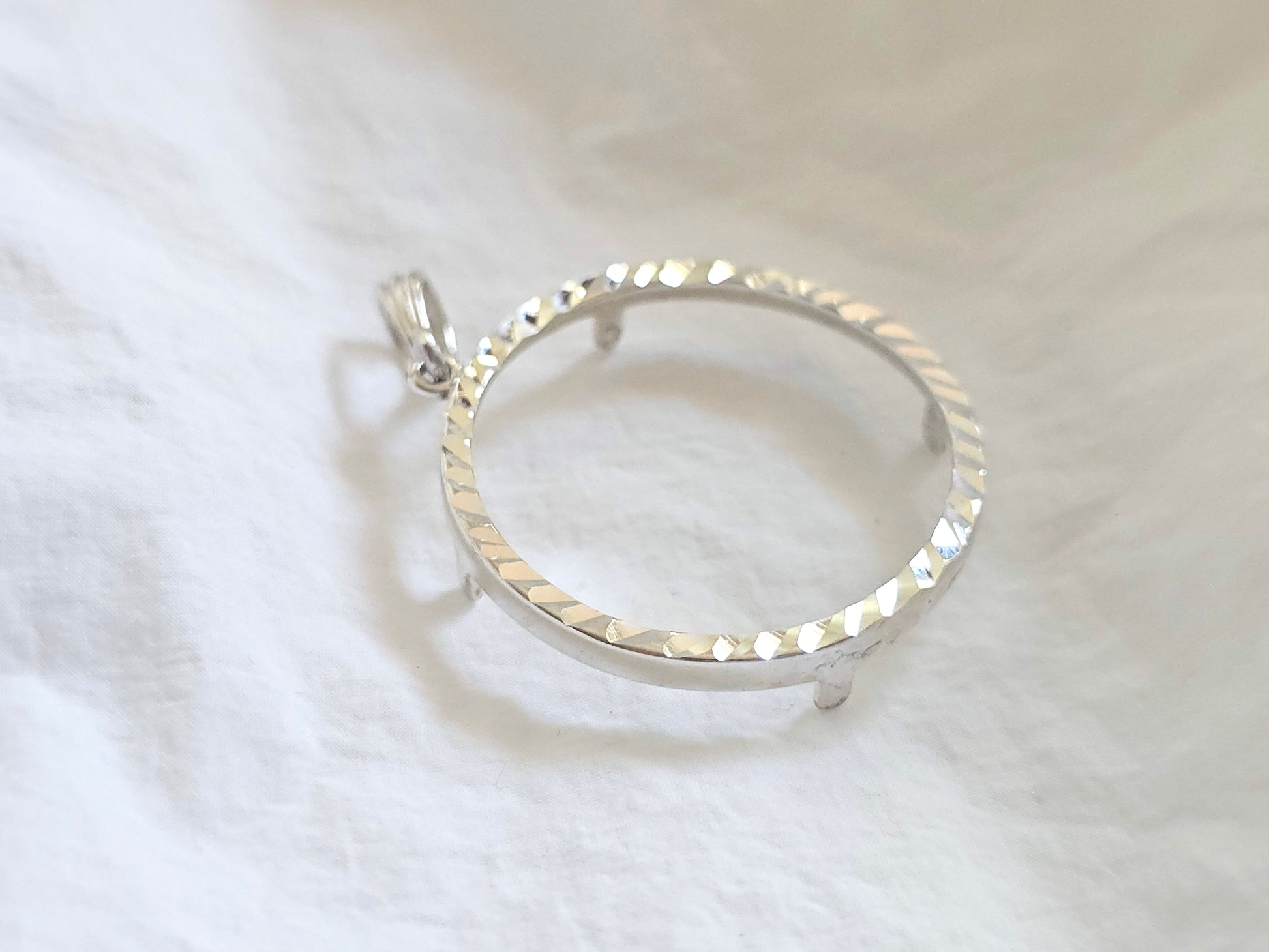 925 Sterling Silver Prong Back Diamond Cut Bezel for 30mm 50 Cent Coins
