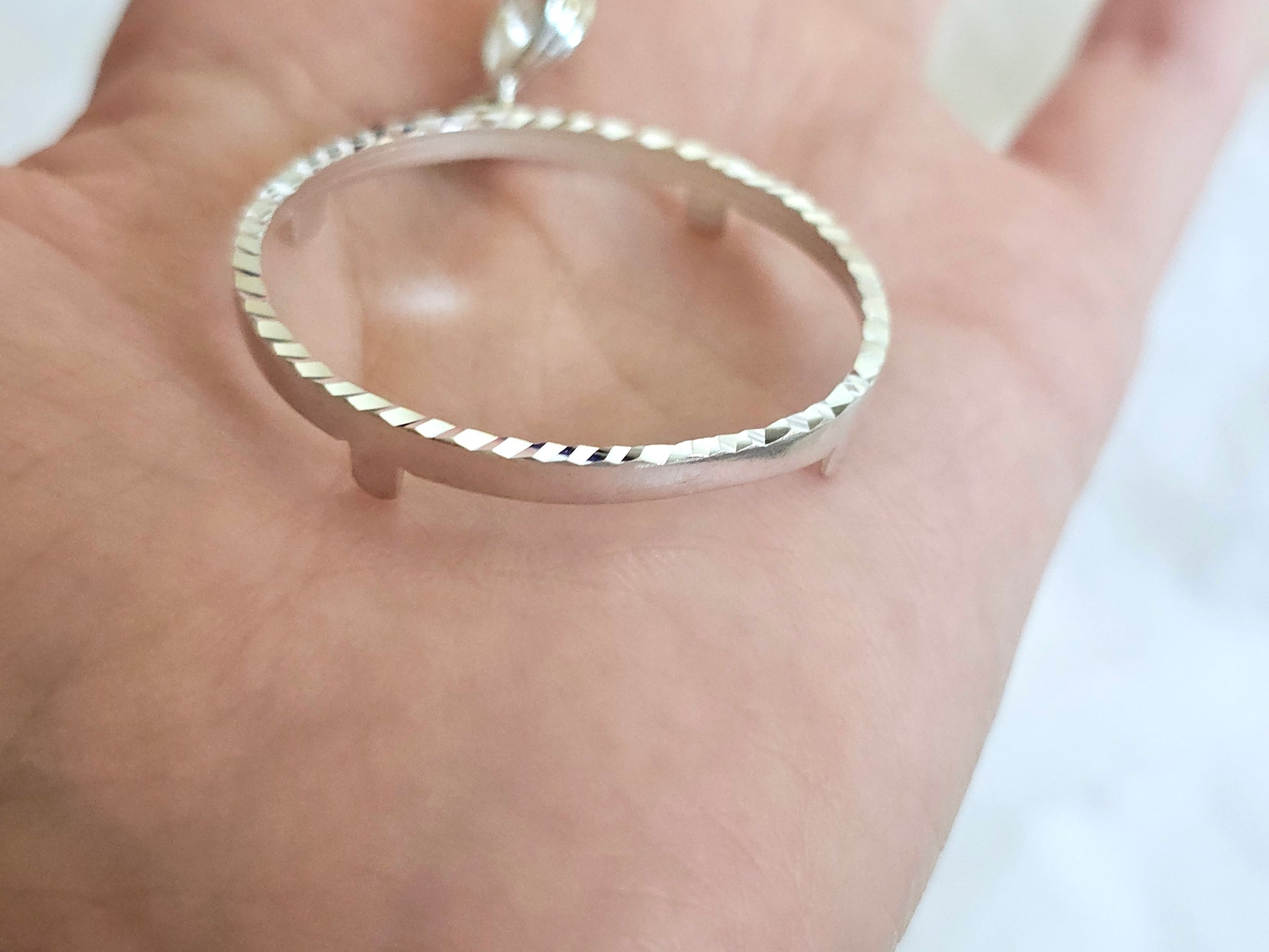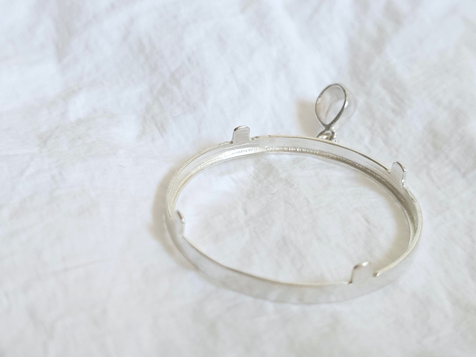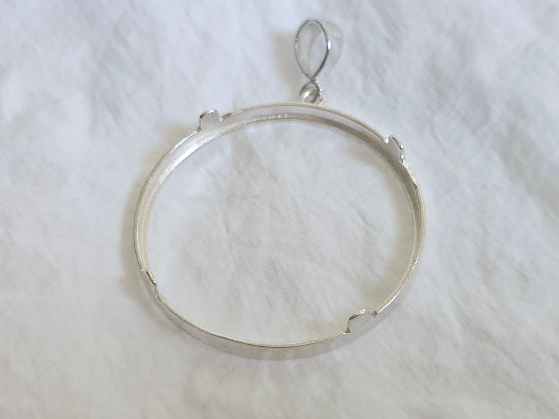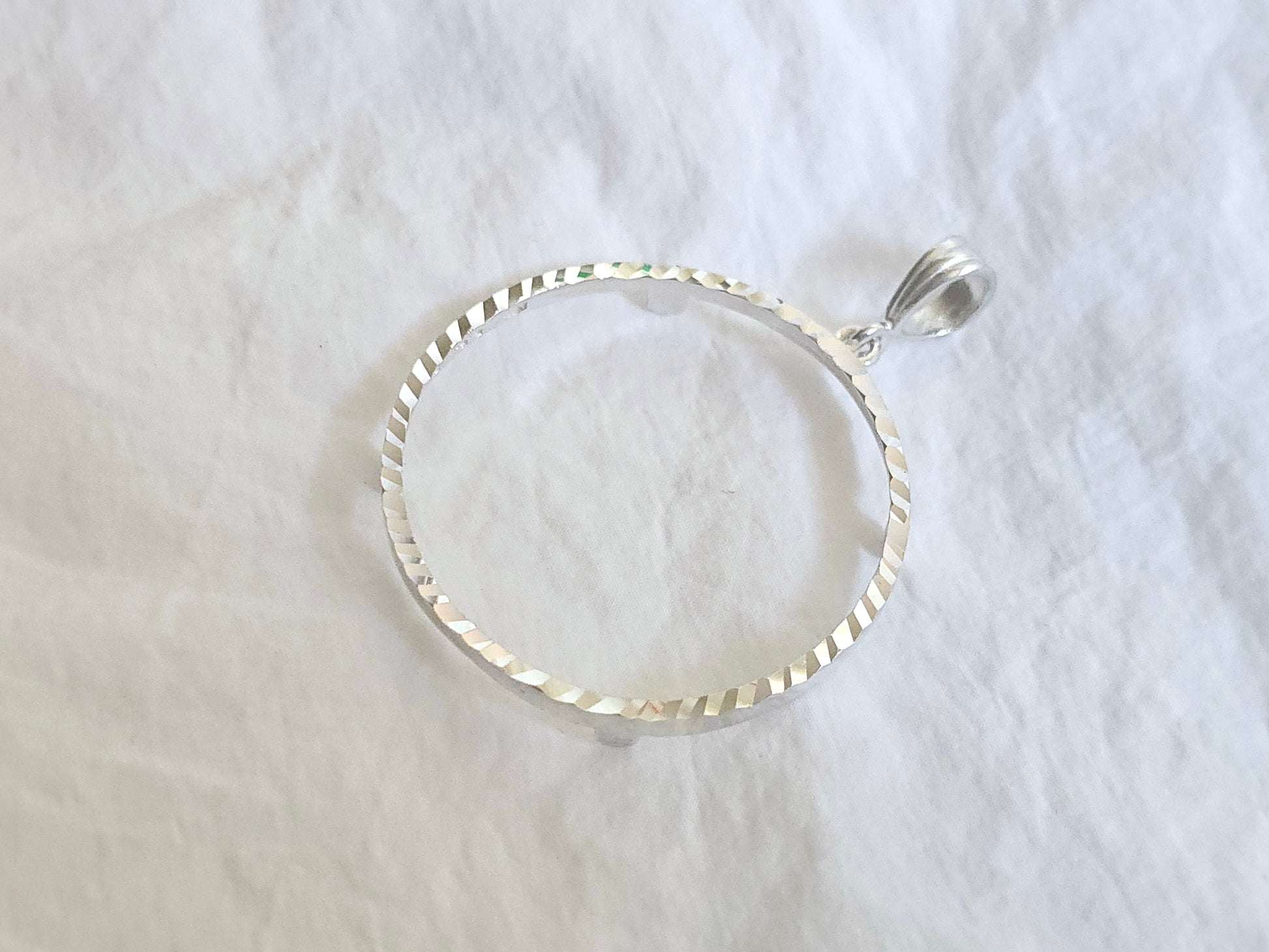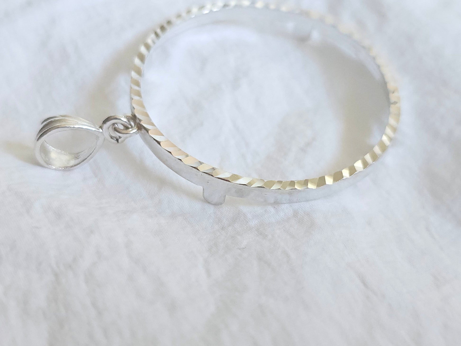 925 Sterling Silver Prong Back Diamond Cut Bezel for 34mm Mexican 1 Peso Coins