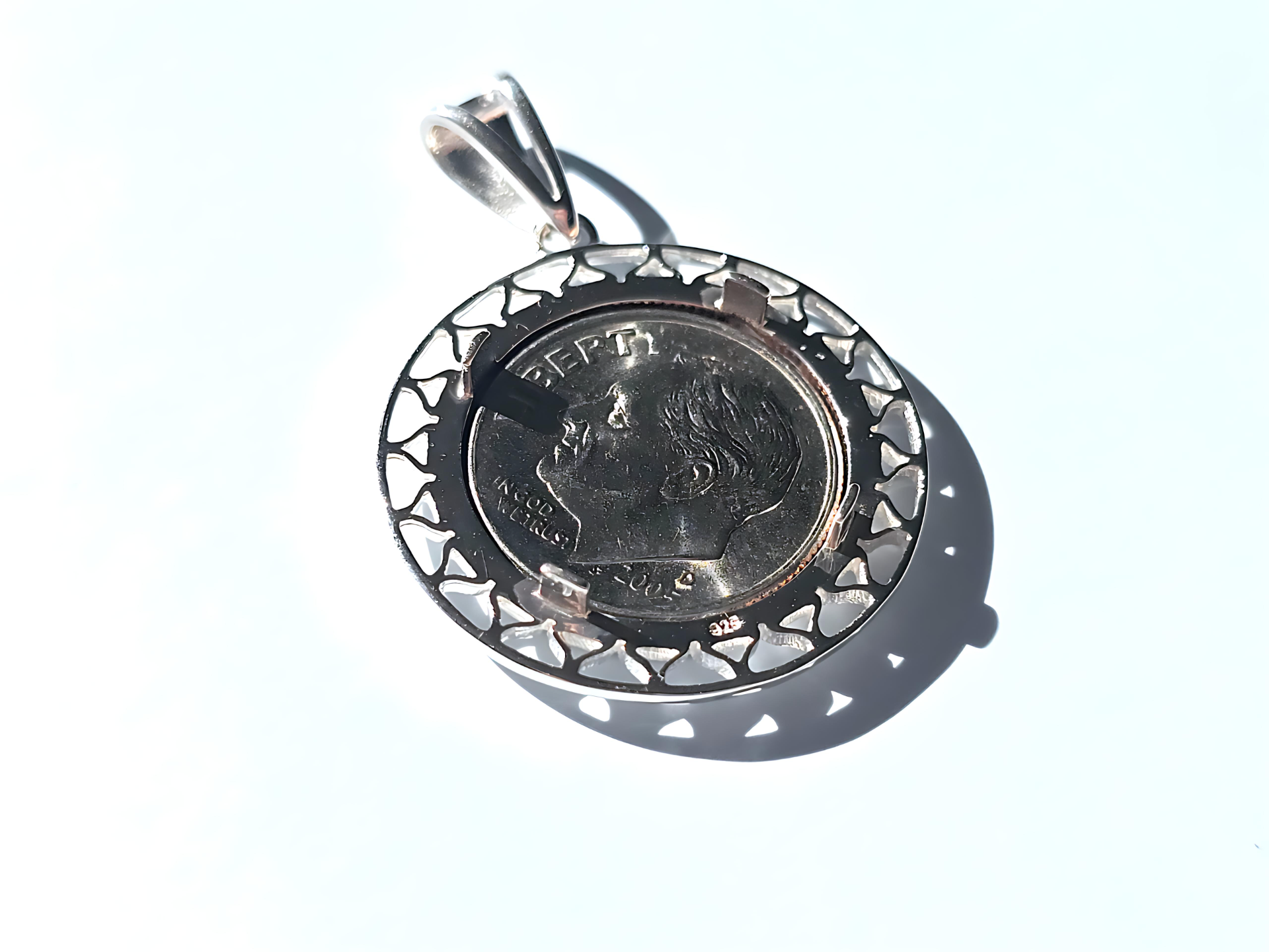 925 Sterling Silver Prong Back Filigree Edge Bezel for 18mm Dime 10 Cent Coins