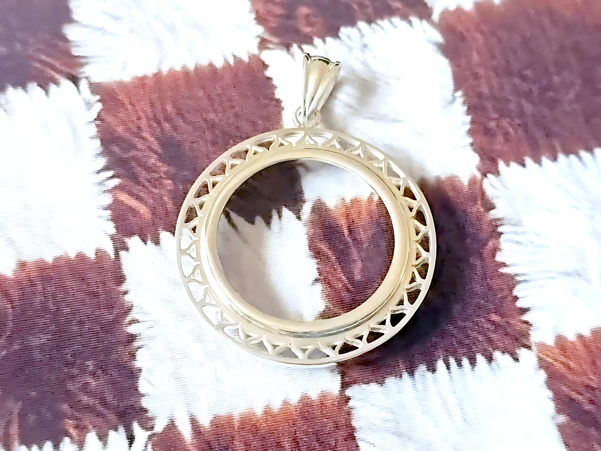 925 Sterling Silver Prong Back Filigree Edge Bezel for 24mm Quarter 25Cent Coins