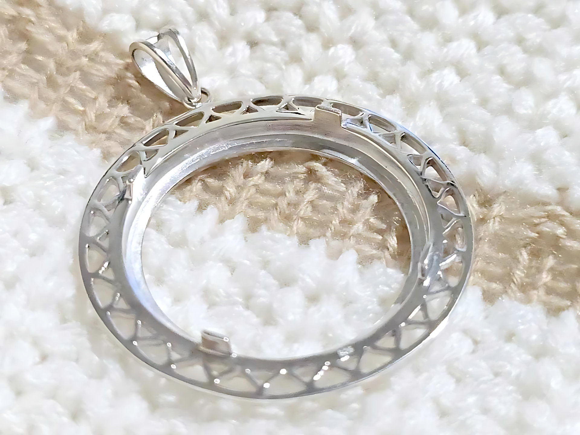 925 Sterling Silver Prong Back Filigree Edge Bezel for 30mm 50 Cent Coins