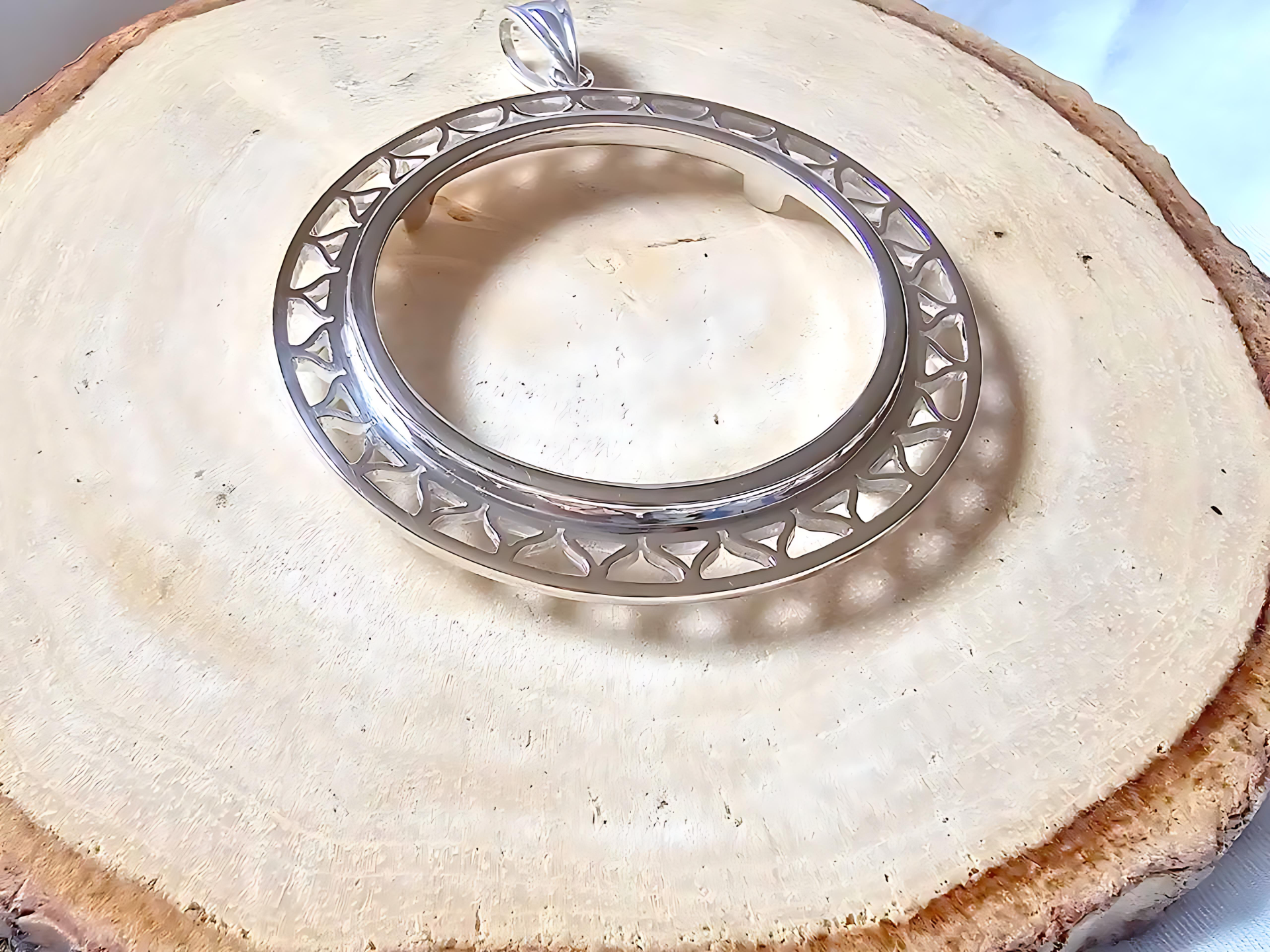 925 Sterling Silver Prong Back Filigree Edge Bezel for 34mm Mexican 1 Peso Coins