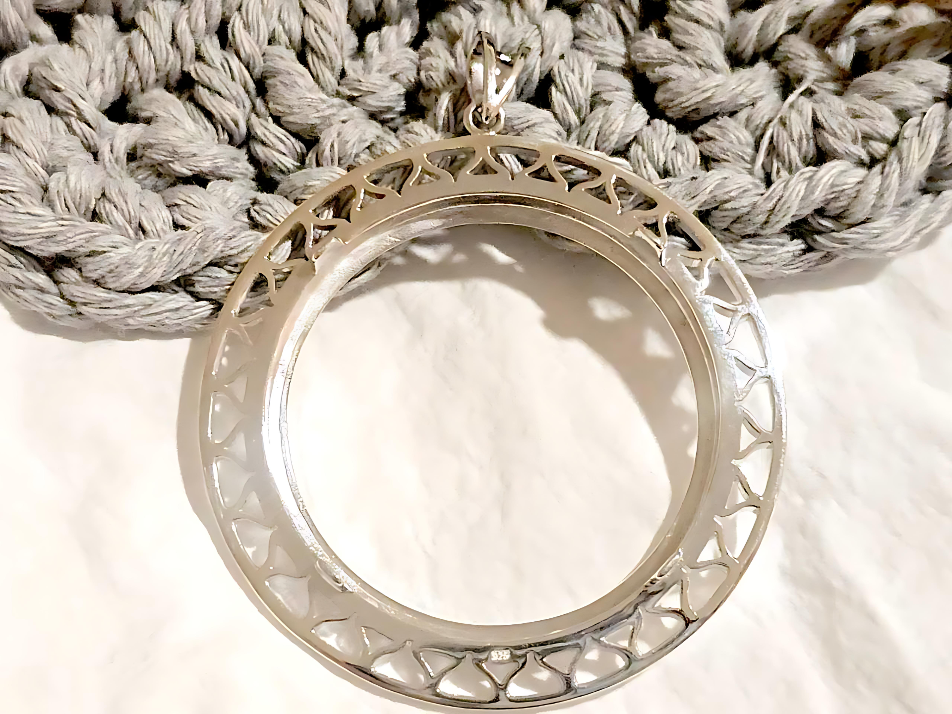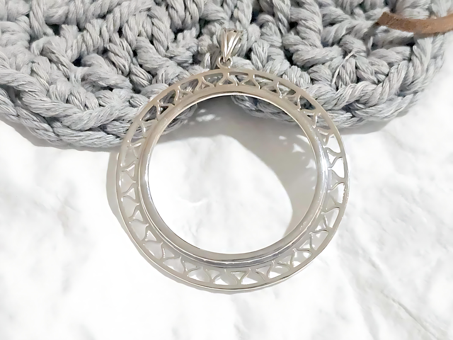 925 Sterling Silver Prong Back Filigree Edge Bezel for 39mm 1oz Coins