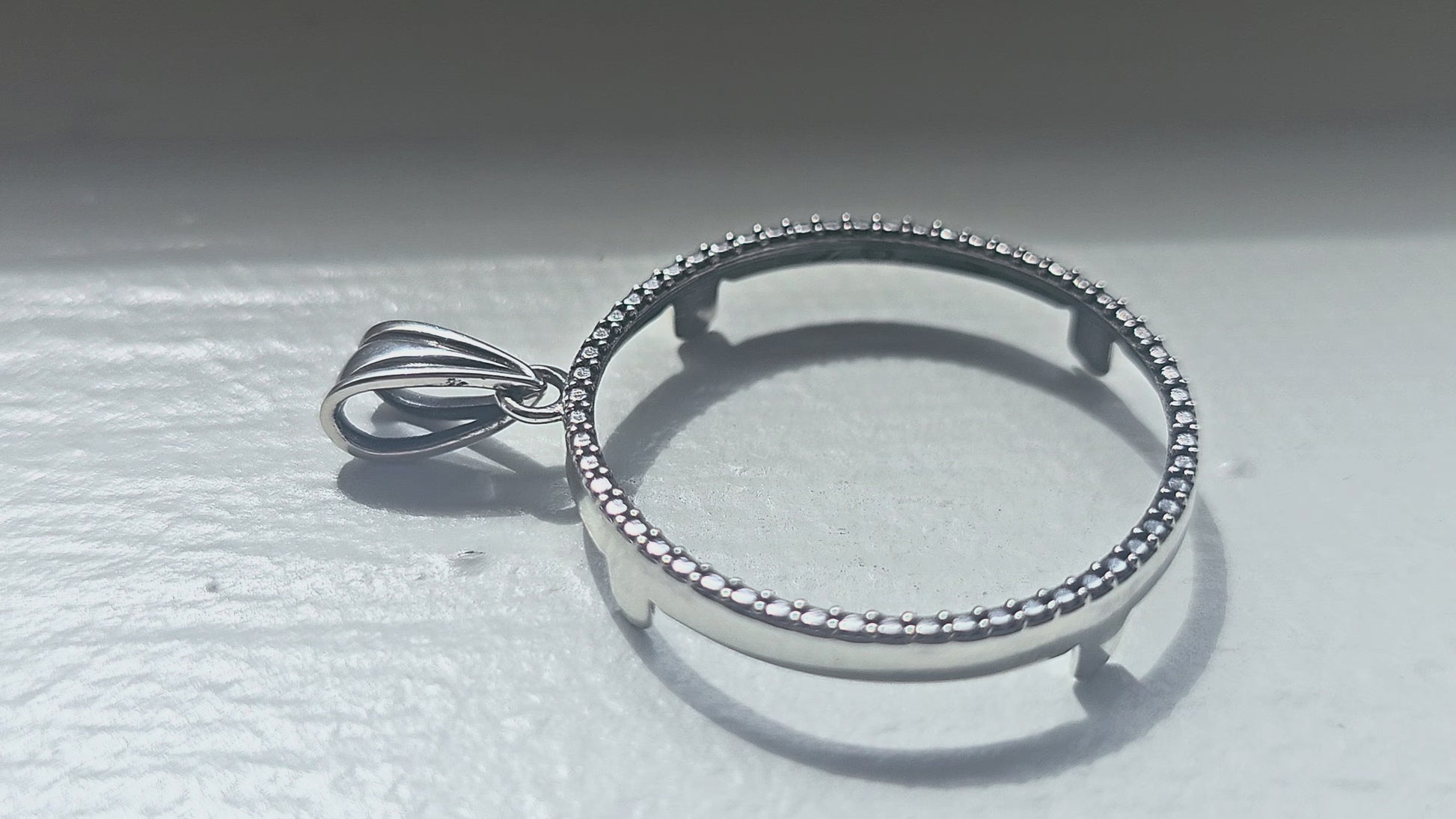 925 Sterling Silver Prong Back Illusion Edge Bezel for 26mm Susan B Anthony Dollar Coin