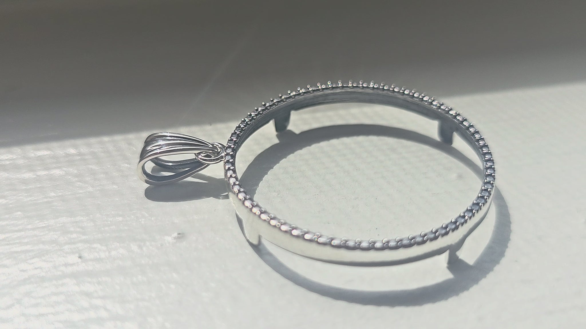 925 Sterling Silver Prong Back Illusion Edge Bezel for 30mm Half Dollar 50 Cents Coins