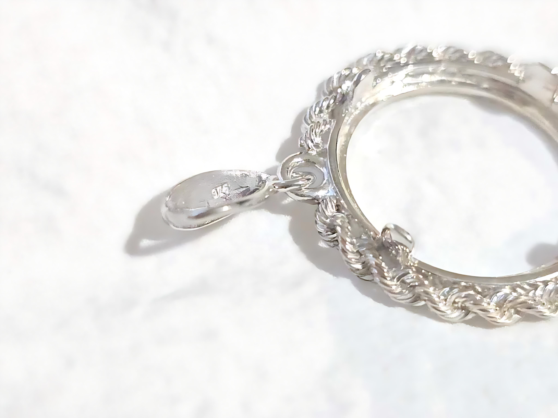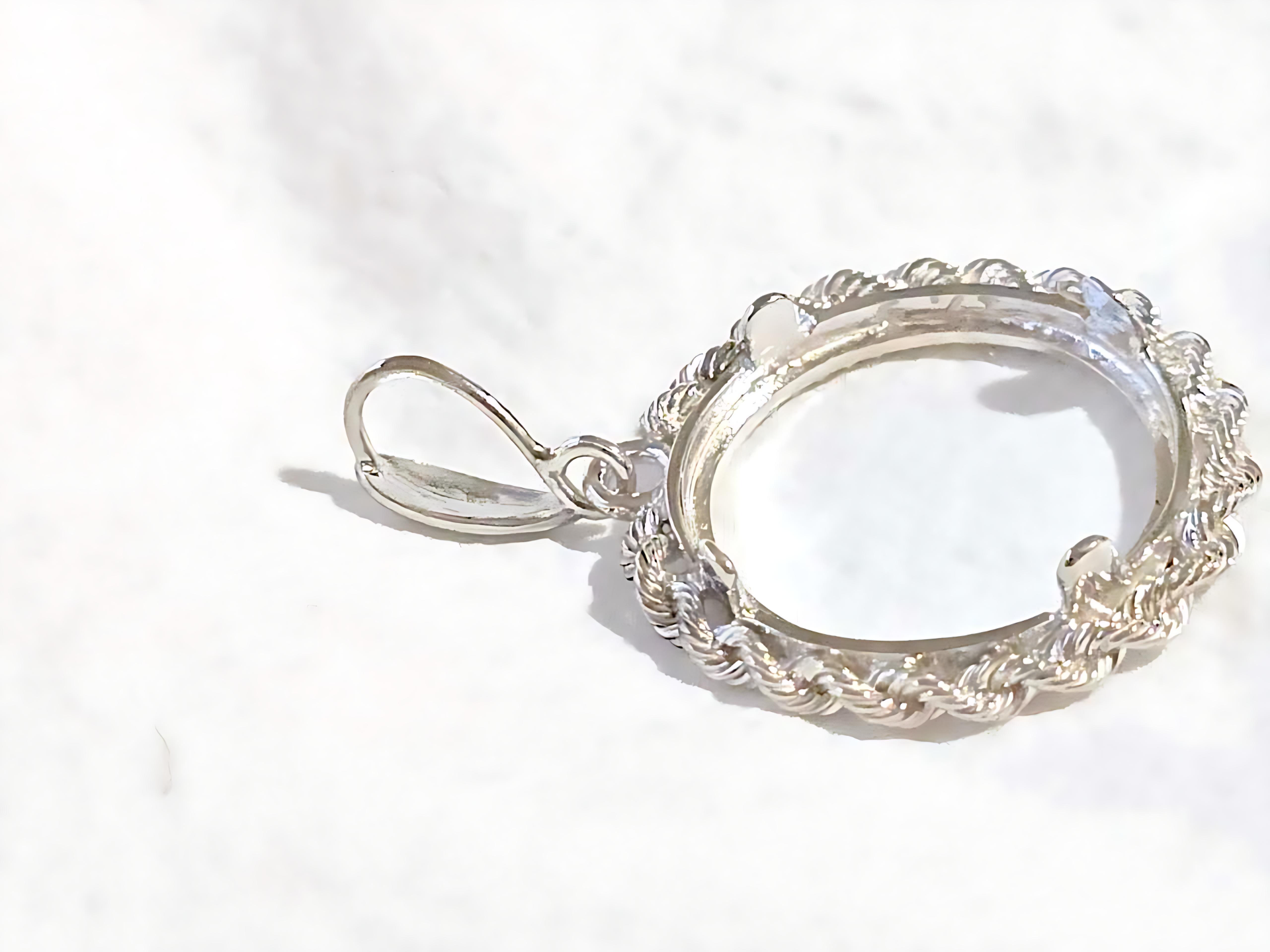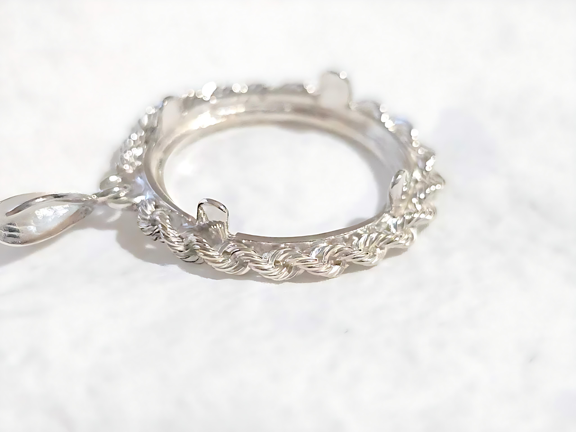 925 Sterling Silver Prong Back Illusion Rope Bezel for 18mm Dime 10 Cent Coins