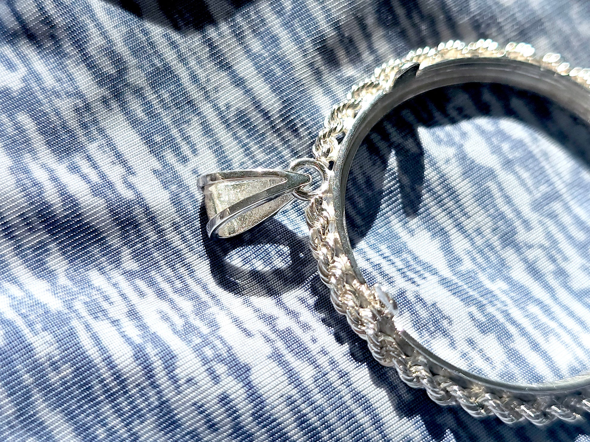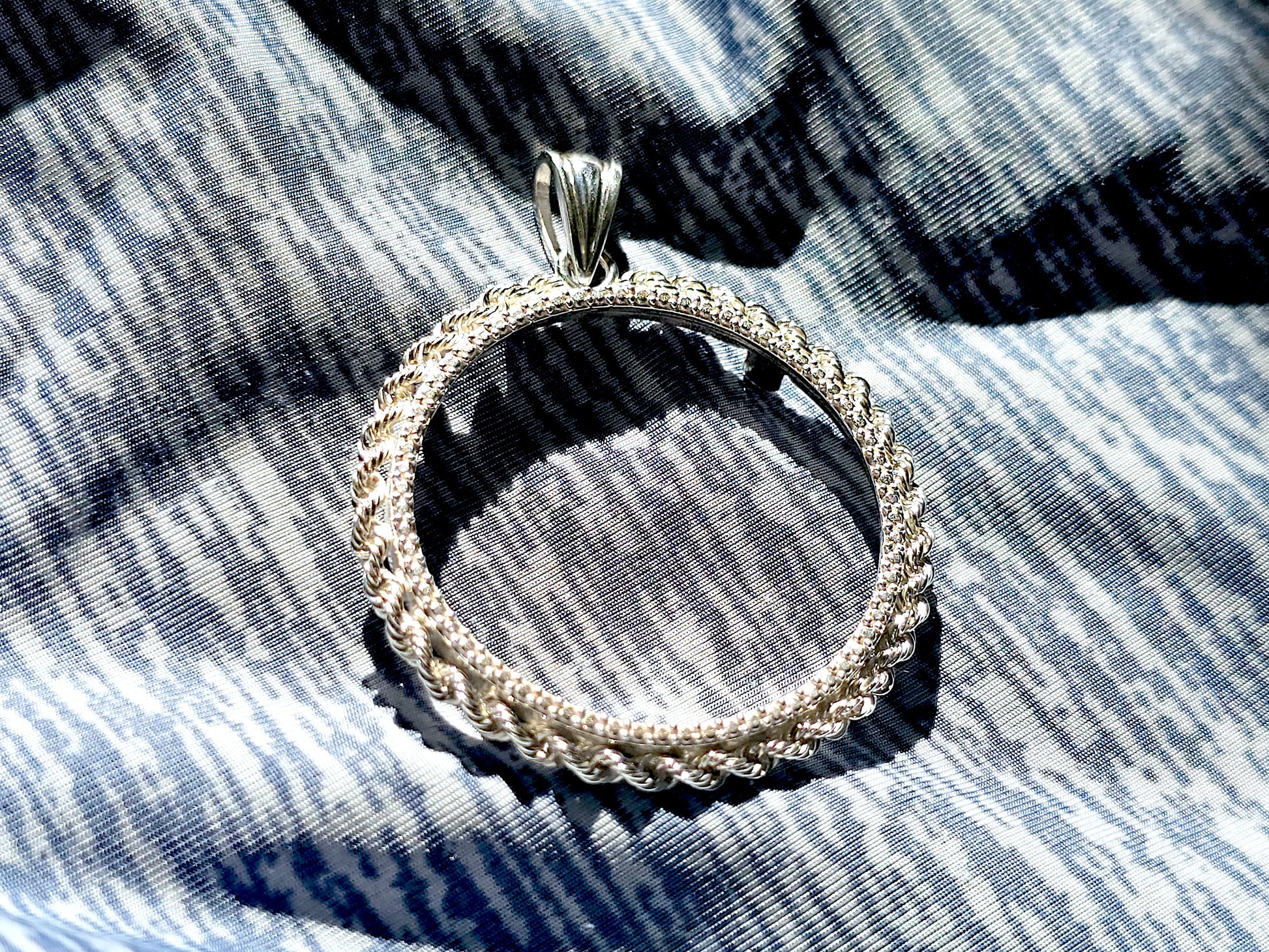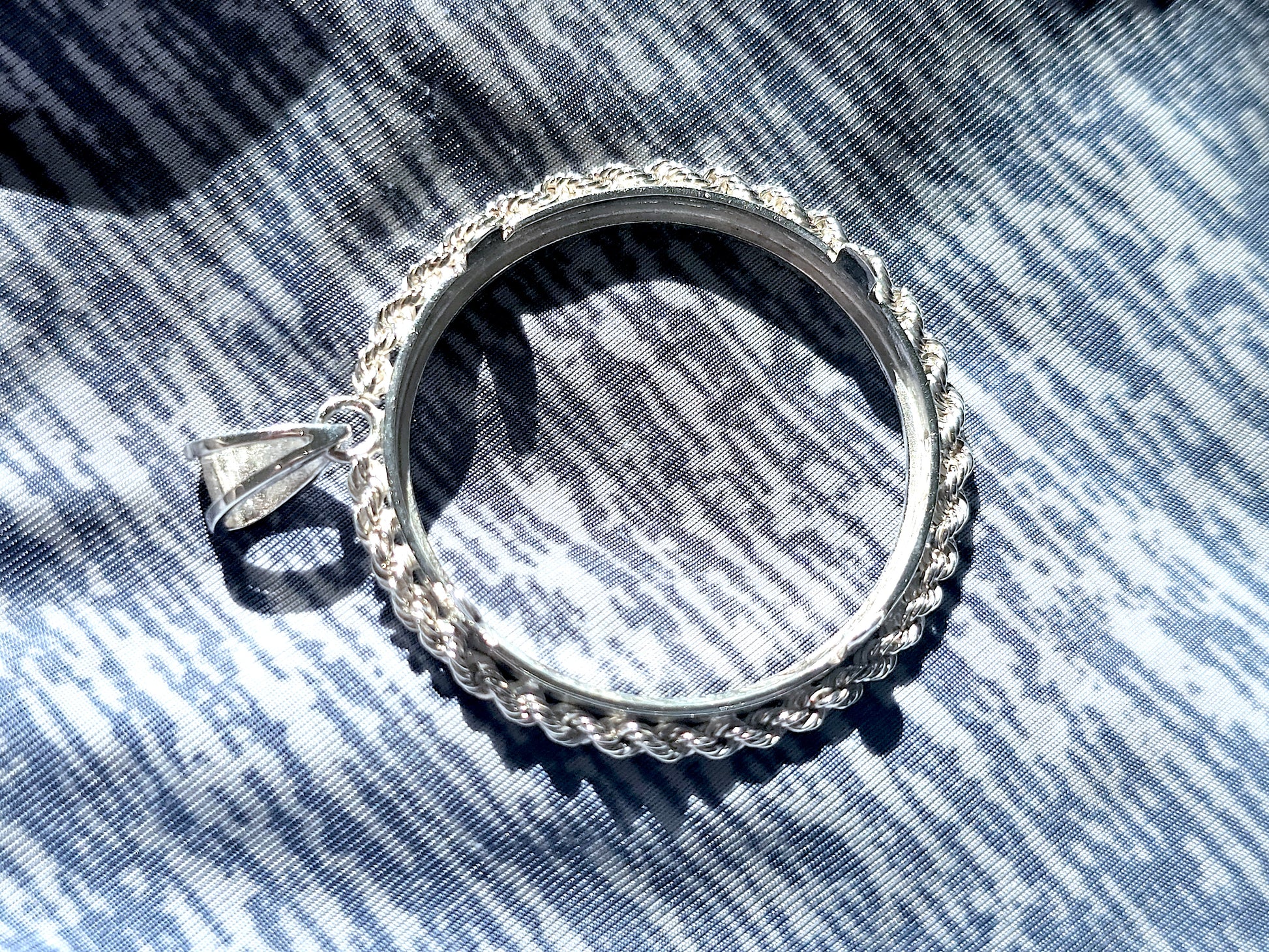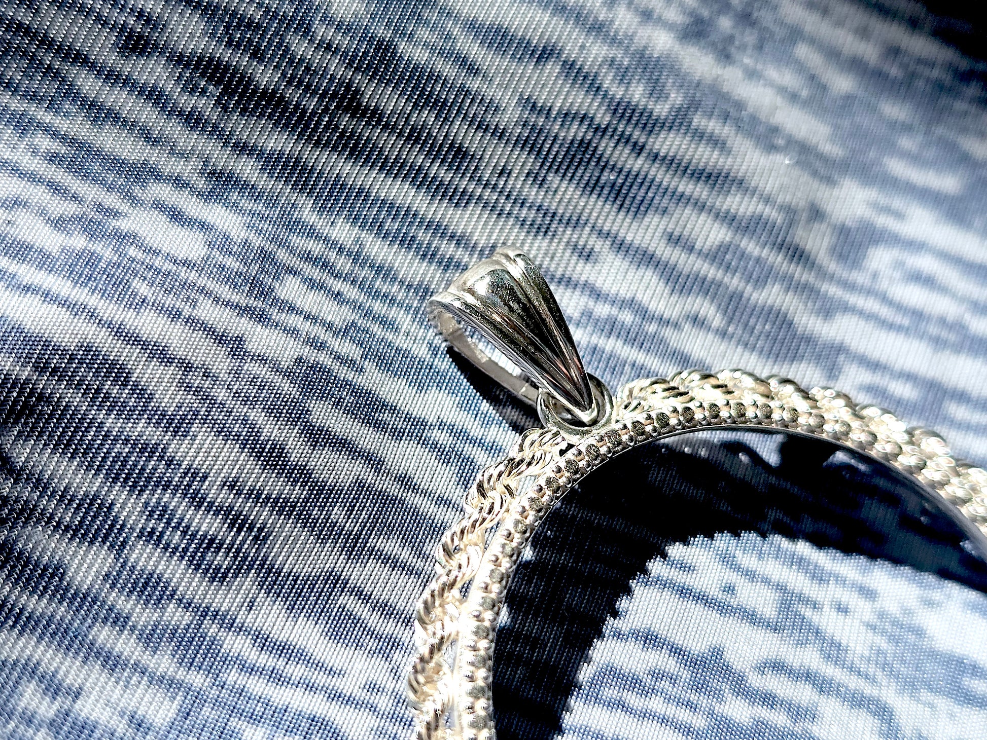 925 Sterling Silver Prong Back Illusion Rope Bezel for 30mm Half Dollar 50 Cents Coins