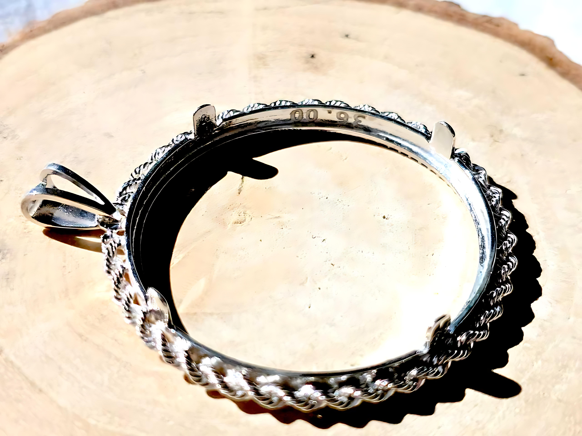 925 Sterling Silver Prong Back Illusion Rope Bezel for 36mm Coins
