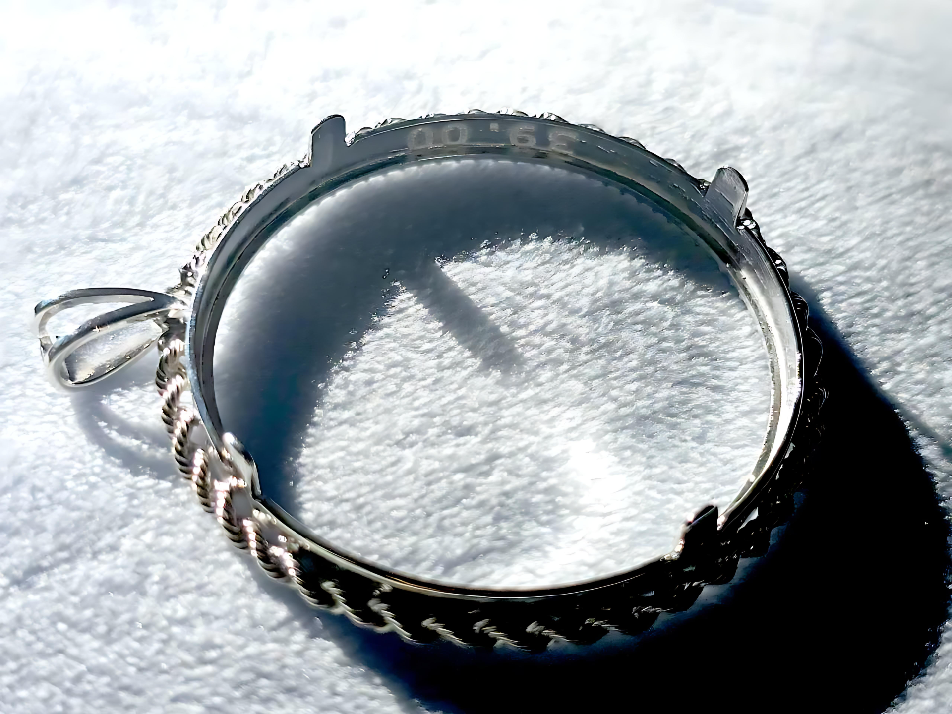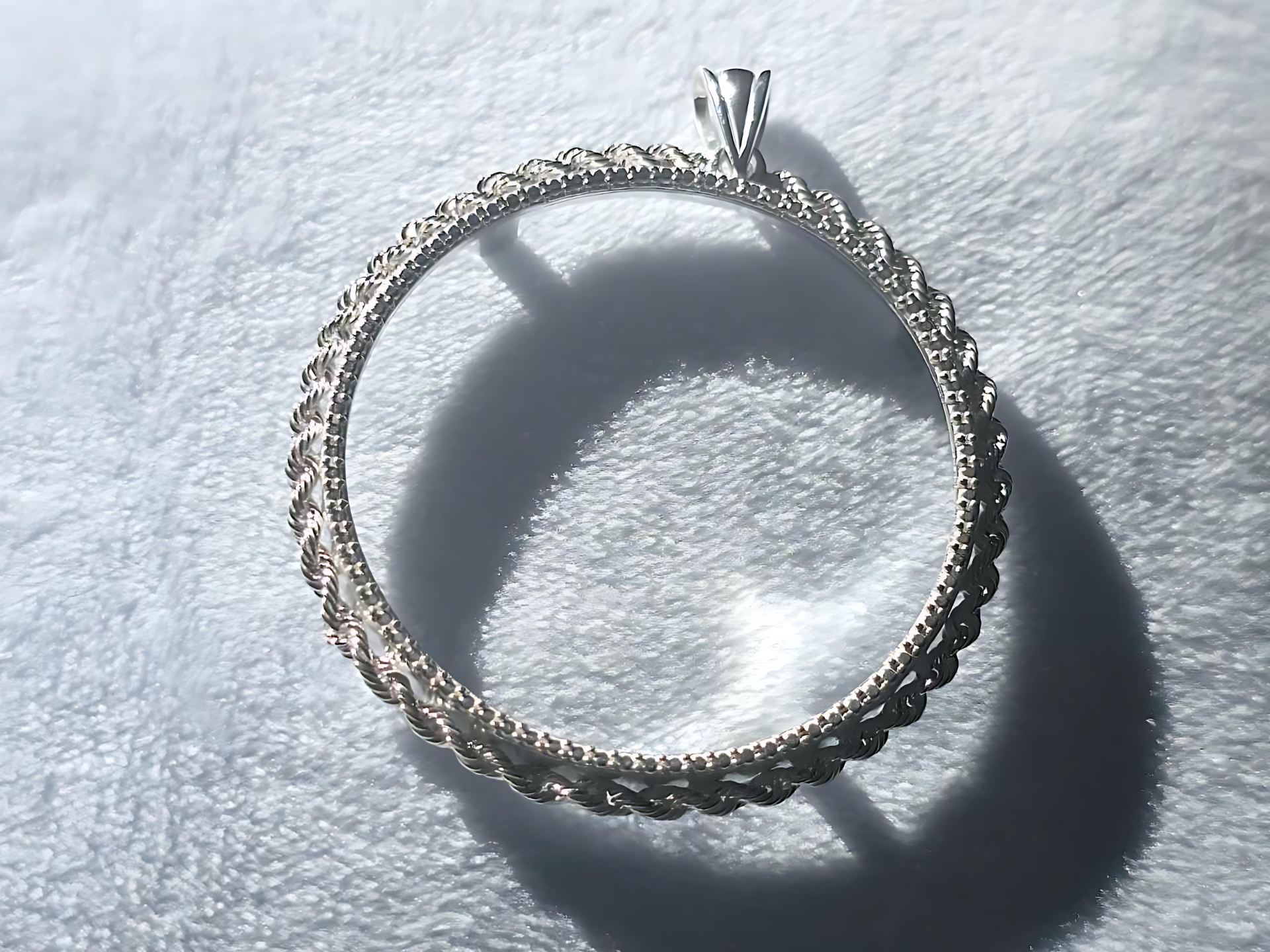 925 Sterling Silver Prong Back Illusion Rope Bezel for 39mm Coins Mexican Cien Pesos