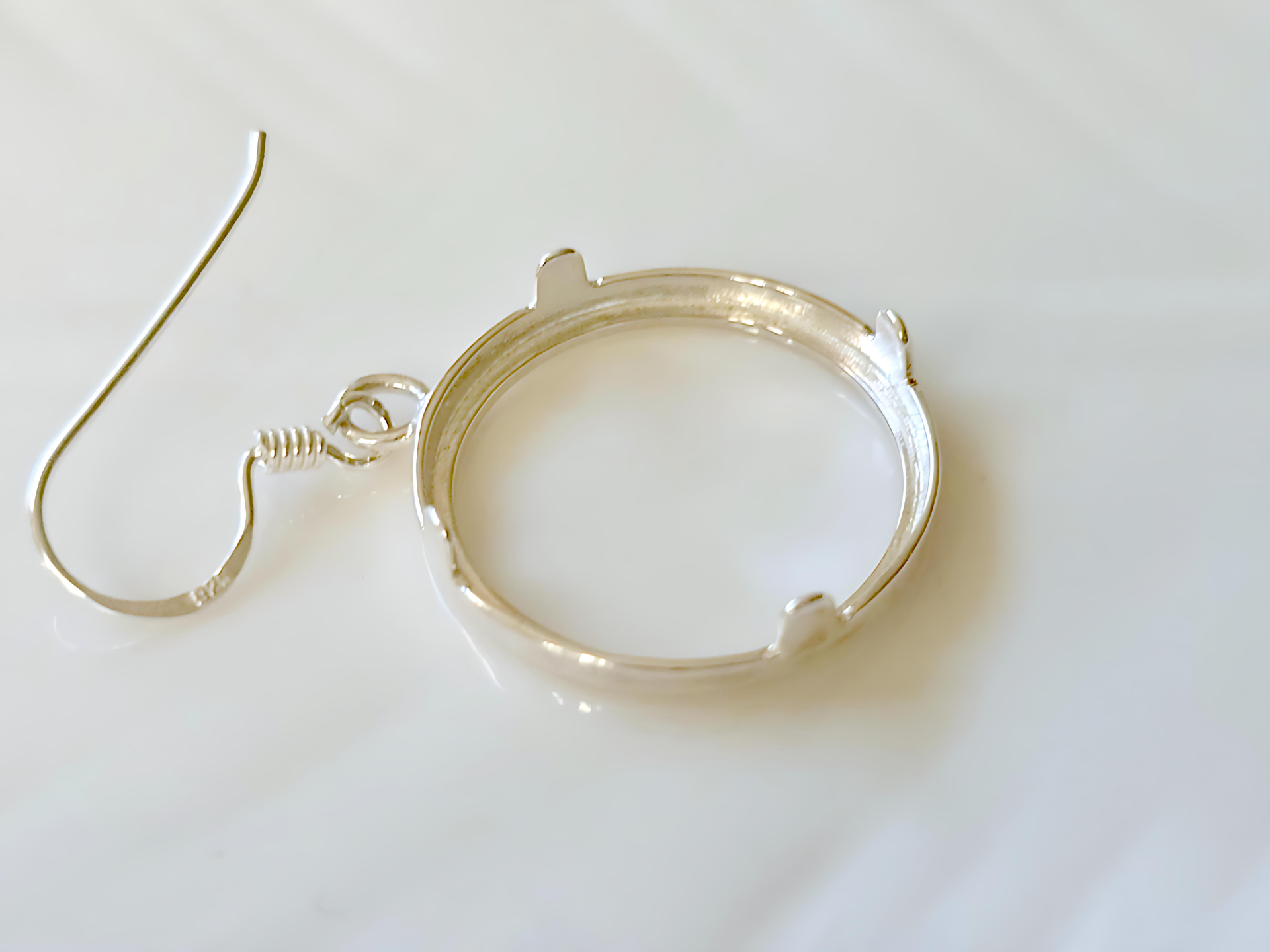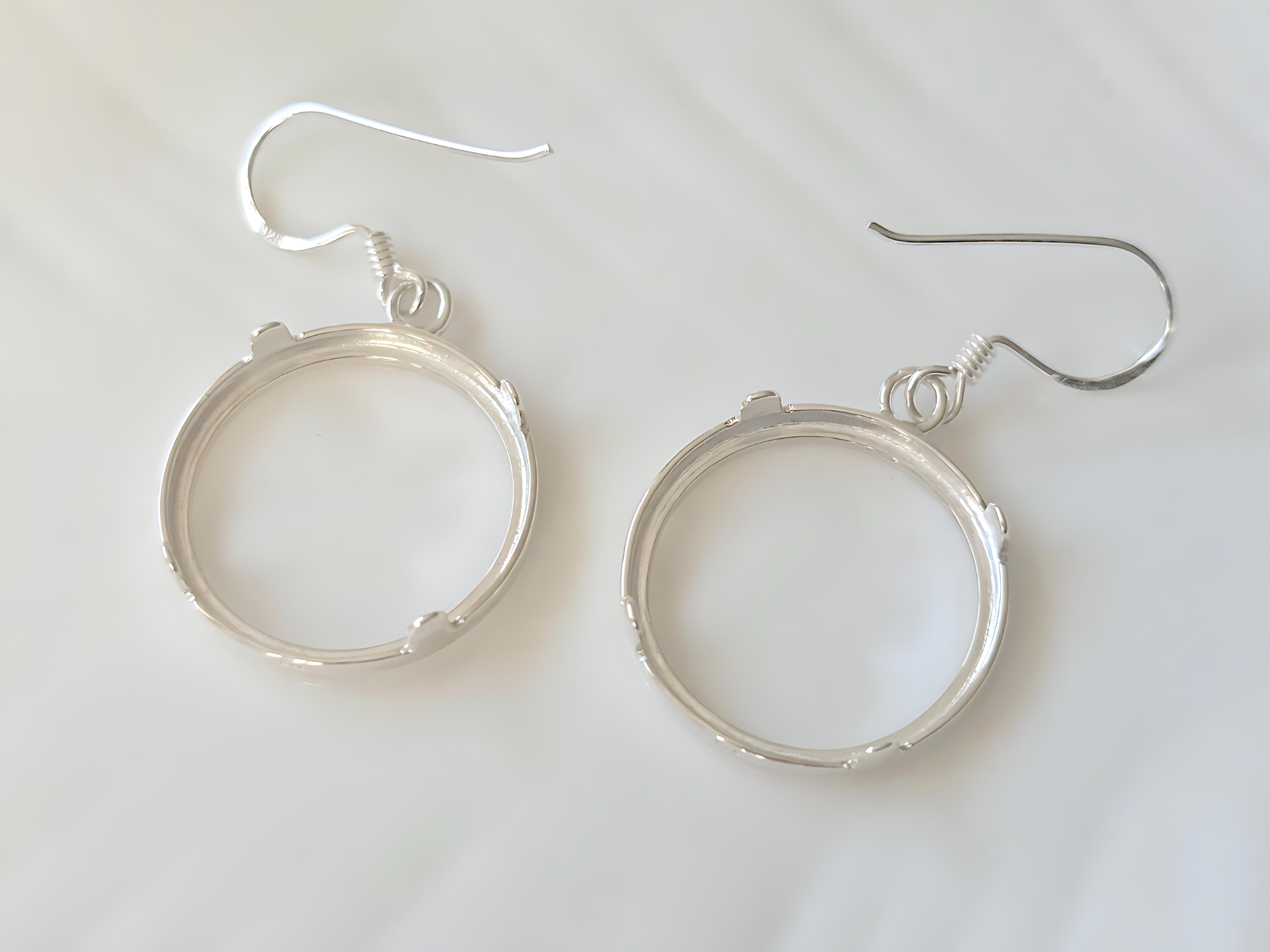 925 Sterling Silver Prong Back Round Edge Bezel Earring for 18mm Dime 10 Cent Coins